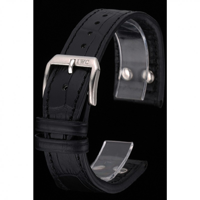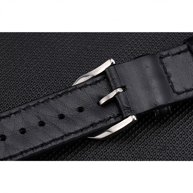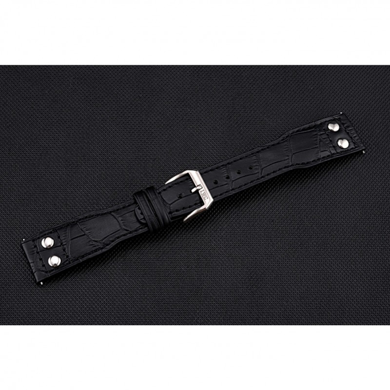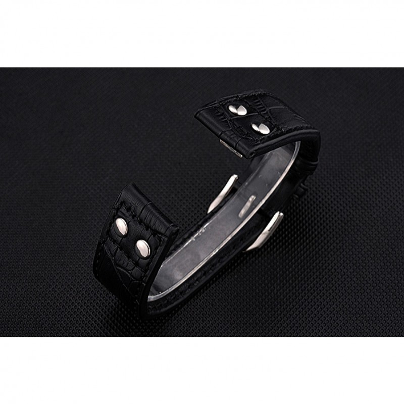 pulsera: correa de piel de cocodrilo negro en relieve calor CBI con CBI grabado de acero inoxidable pulido de gancho hebilla de cierre