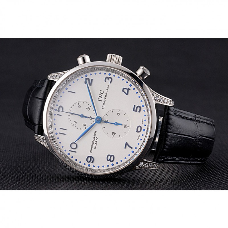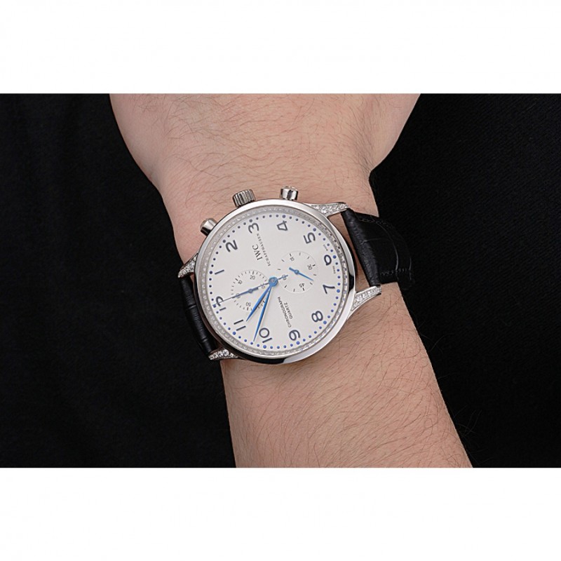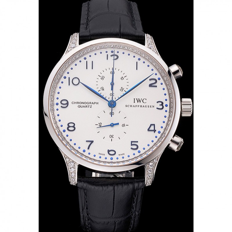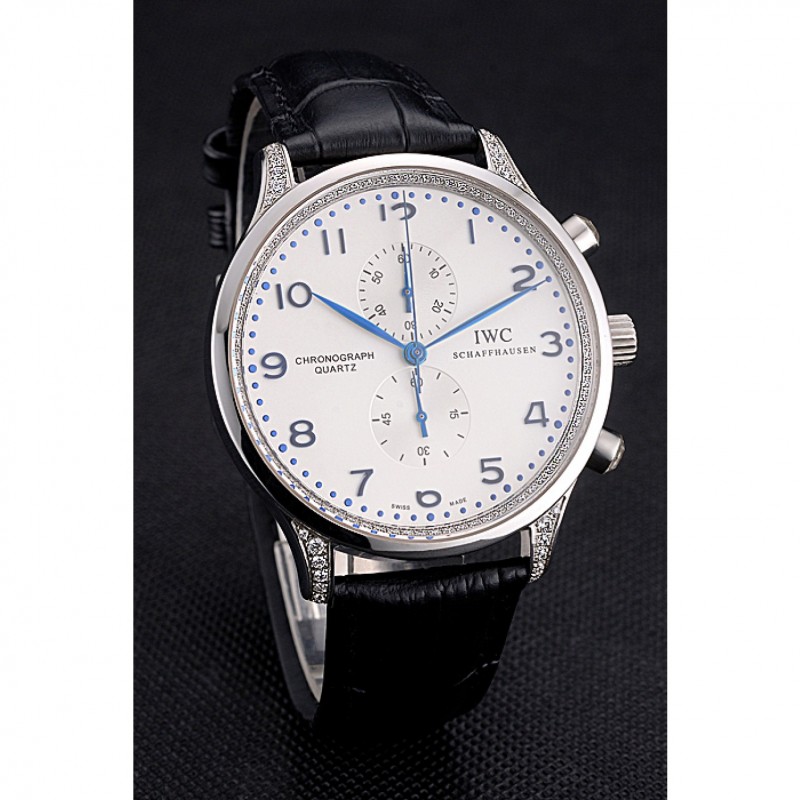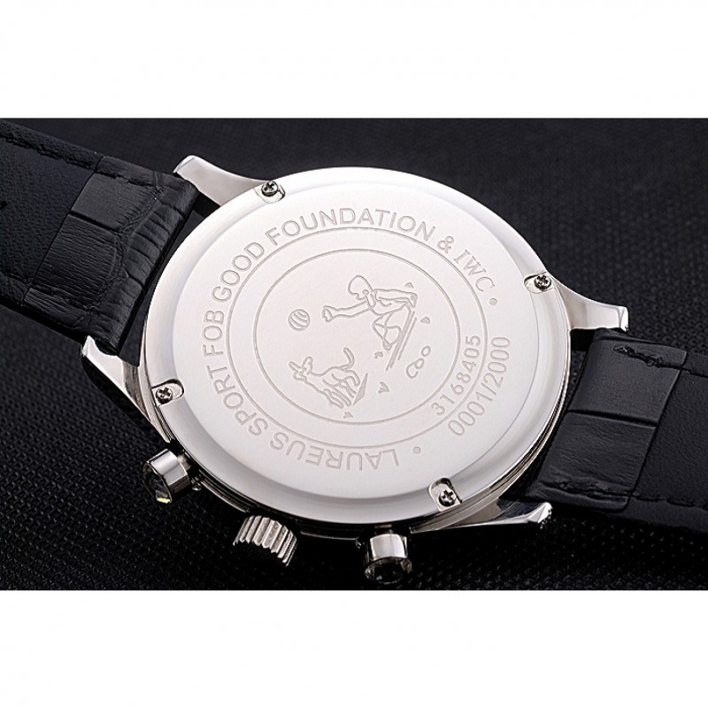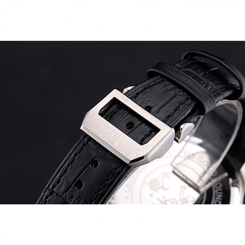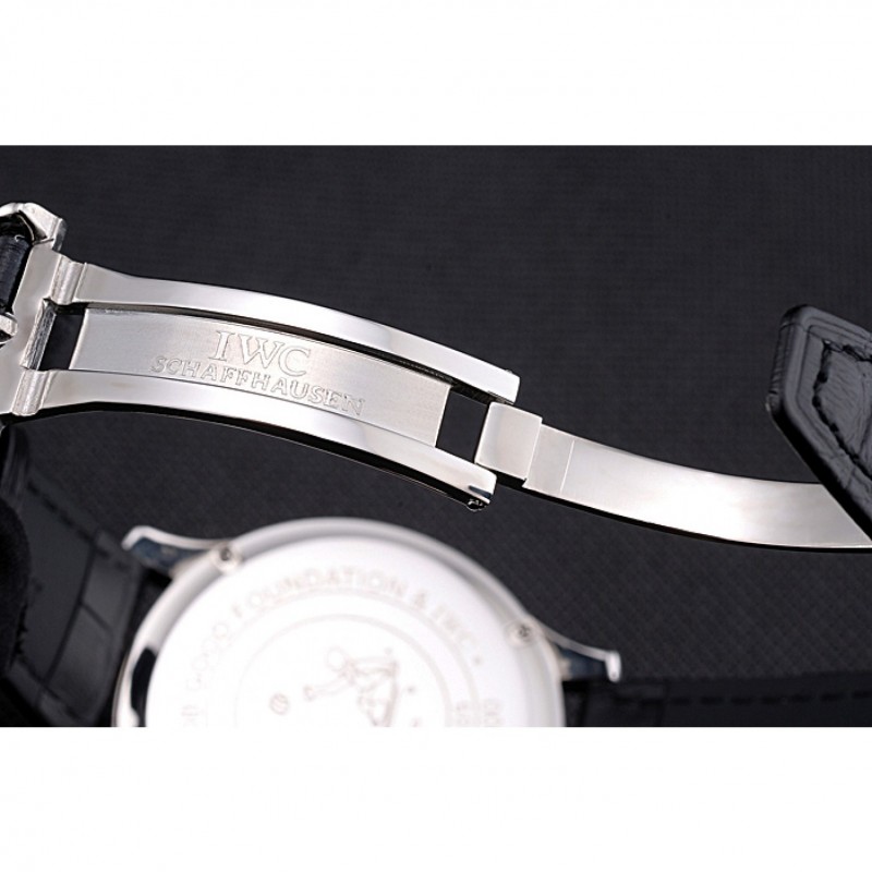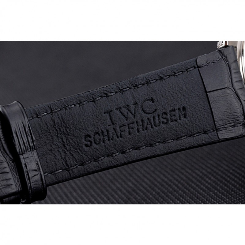 pulsera: correa de piel de cocodrilo negro calor IWC Schaffhauser en relieve con CBI grabado acero inoxidable cepillado plegable en cierre de gancho