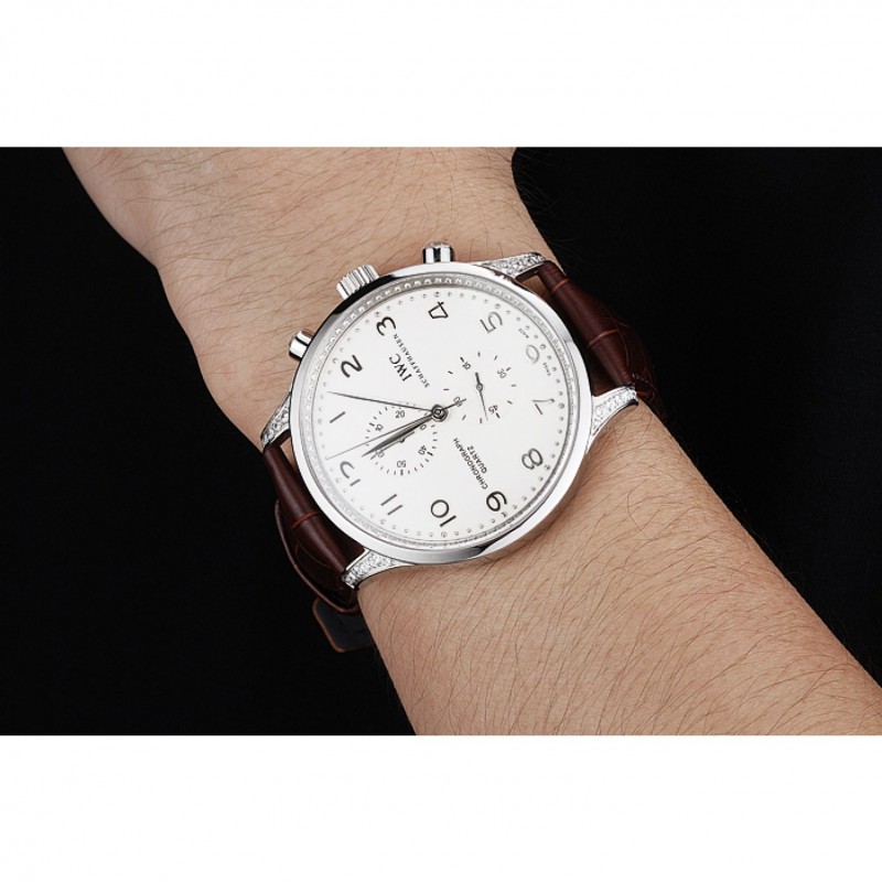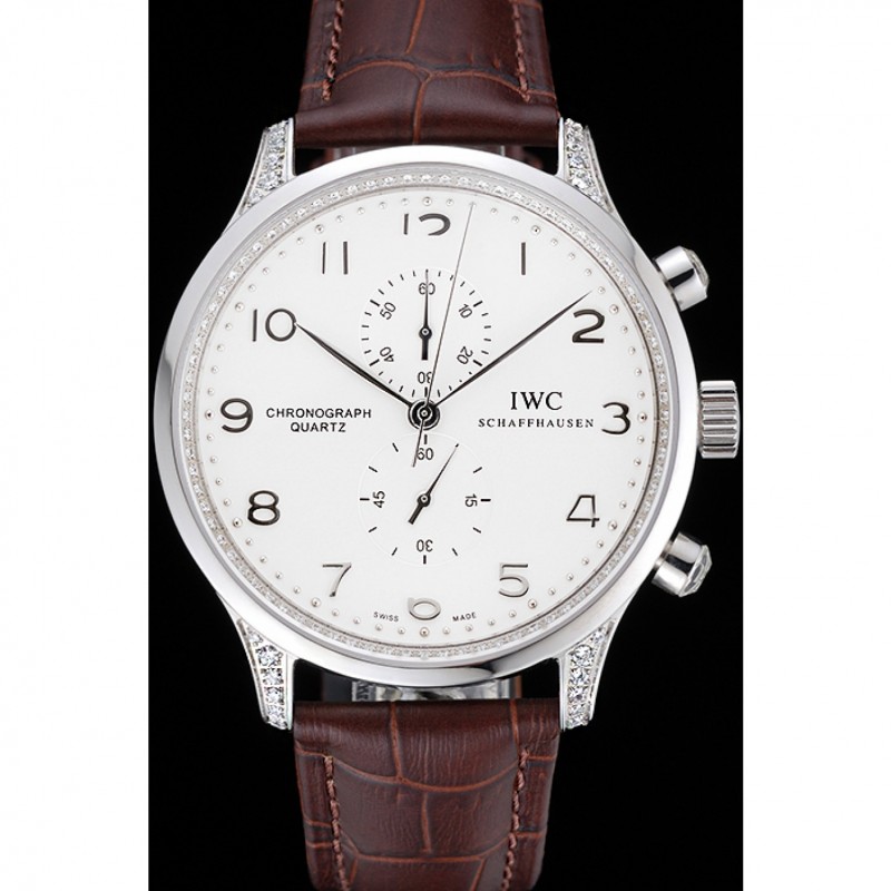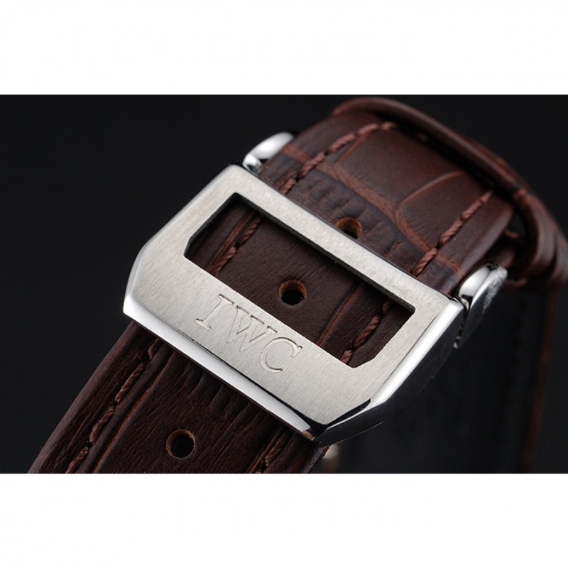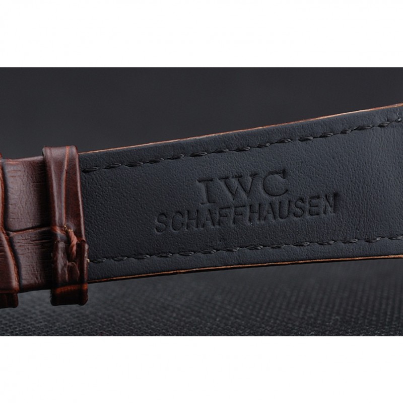 pulsera: correa de piel de cocodrilo marrón calor IWC Schaffhauser en relieve con CBI grabado acero inoxidable cepillado plegable en cierre de gancho