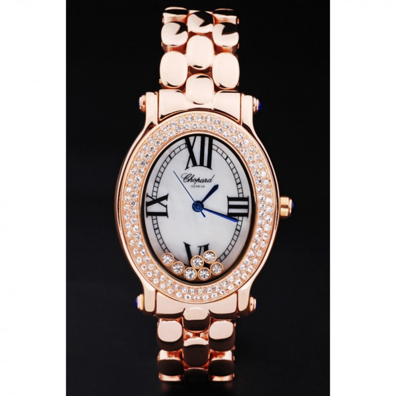 Descripción:. Con lujo y la diversión flotante diamantes falsos, este reloj réplica de relojes de oro rosa de tono es totalmente auténtica y magnífica