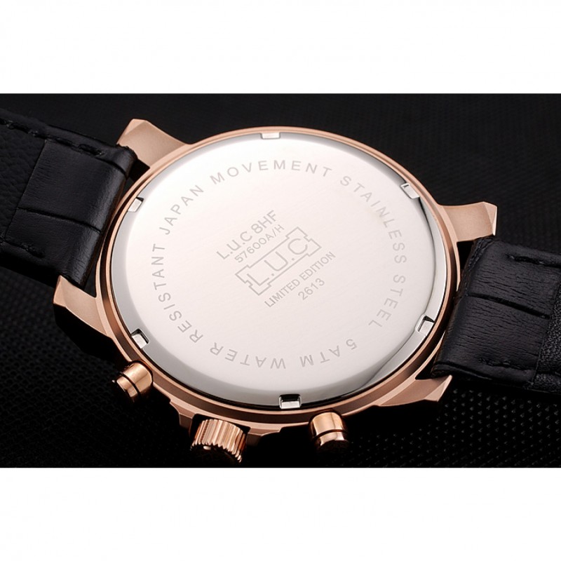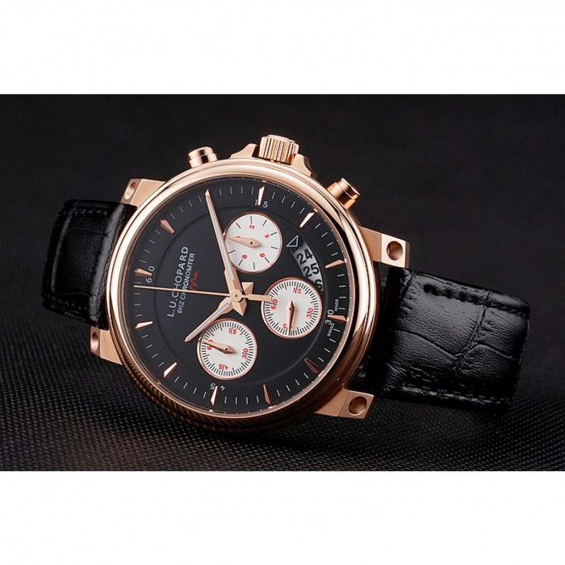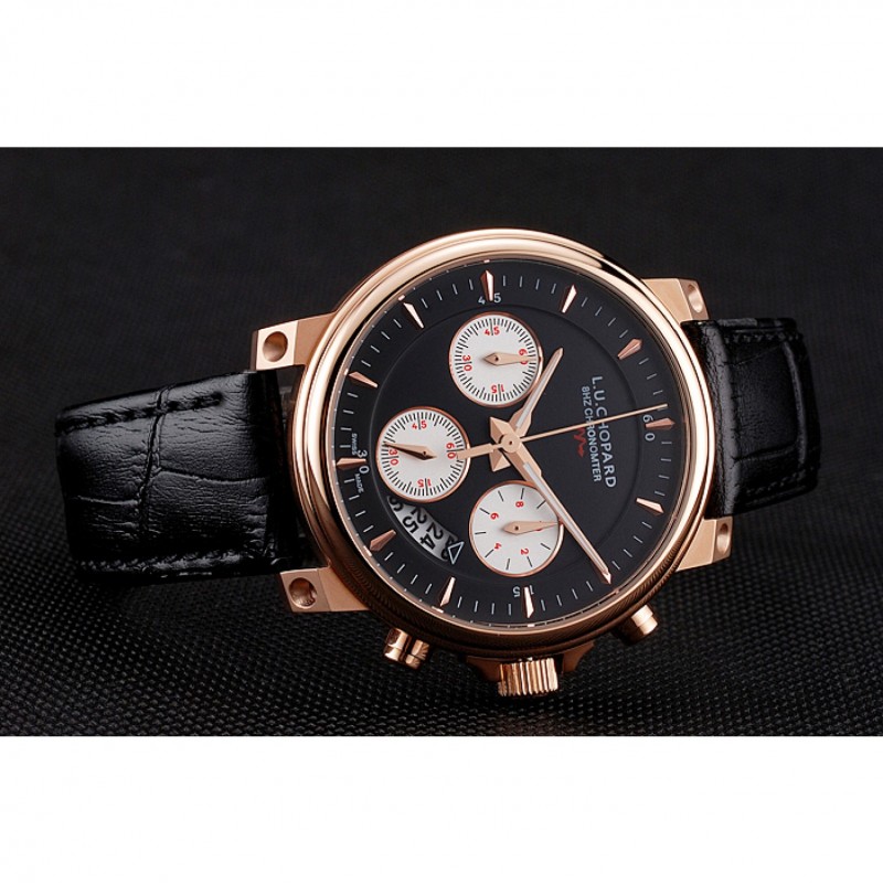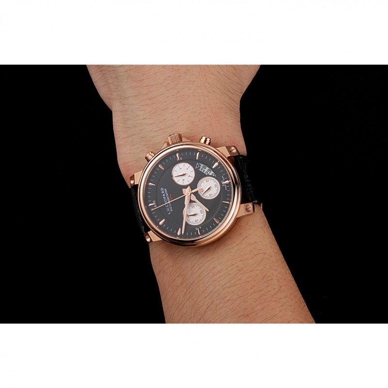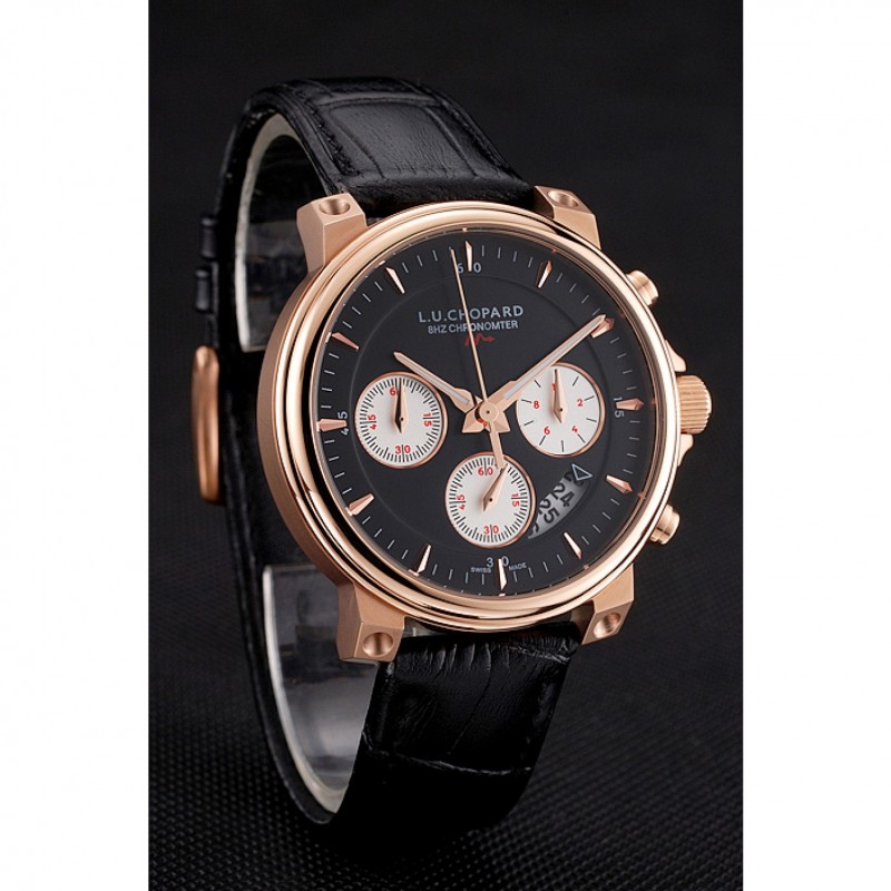 pulsera: 18k correa de piel de cocodrilo negro en relieve calor Chopard con Chopard grabado cepillado rose-chapado en oro broche de gancho bucke