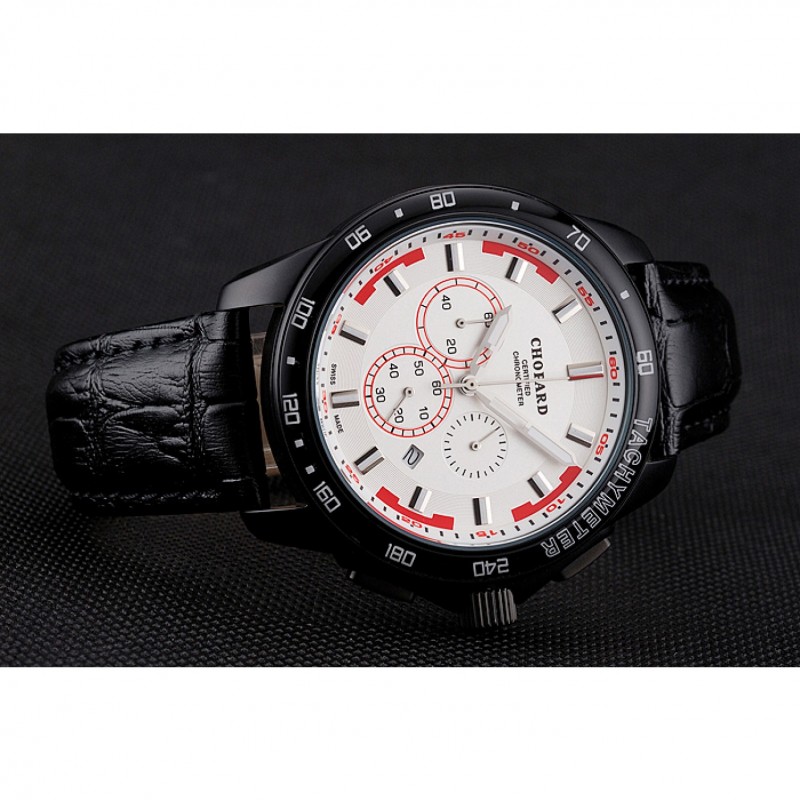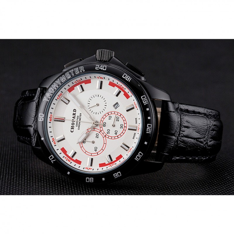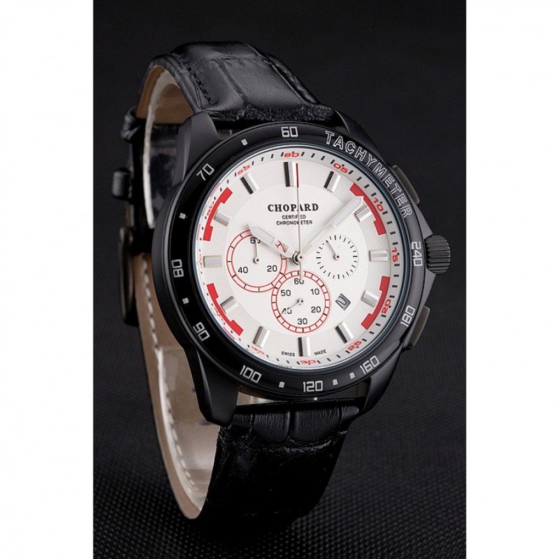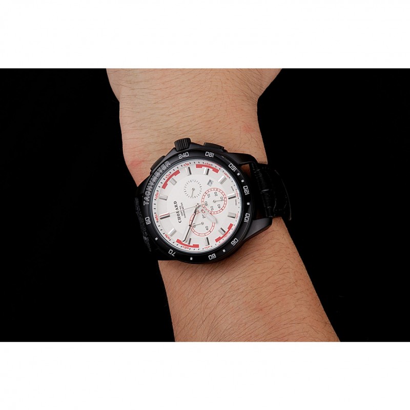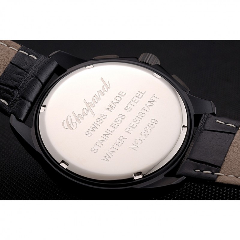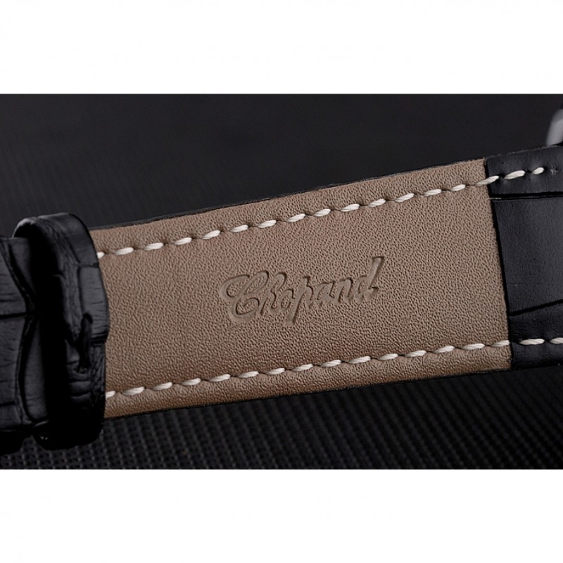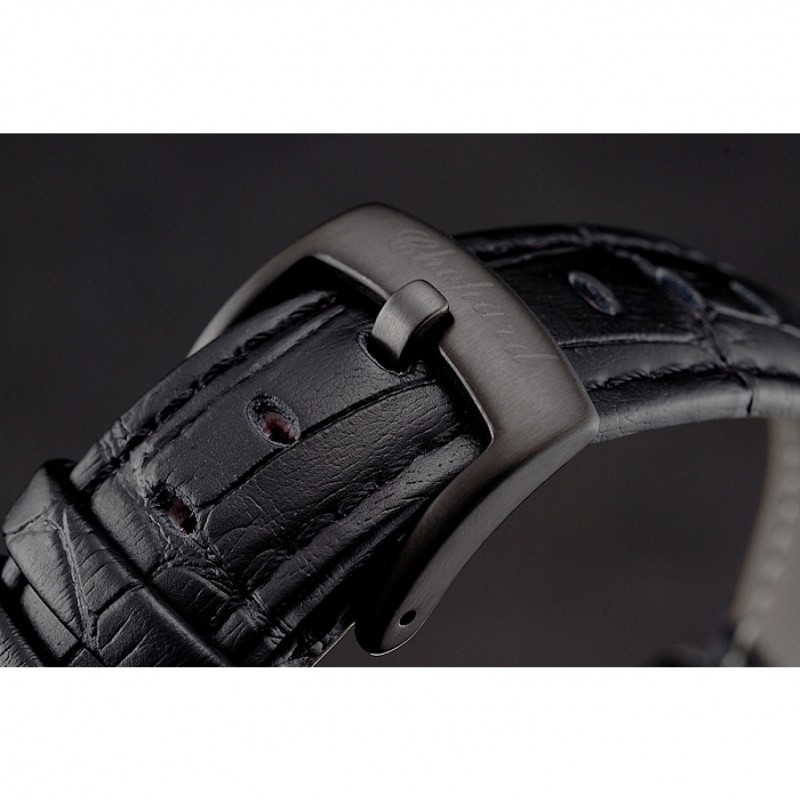 pulsera: correa de piel de cocodrilo negro en relieve calor Chopard con Chopard grabado cepillado ion-plateado gancho bucke corchete