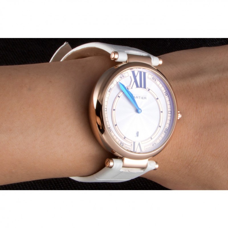 pulsera: plateado en relieve correa de piel de cocodrilo blanco calor Cartier rosa de 18 quilates de oro y cierre de botón de bloqueo de la hebilla