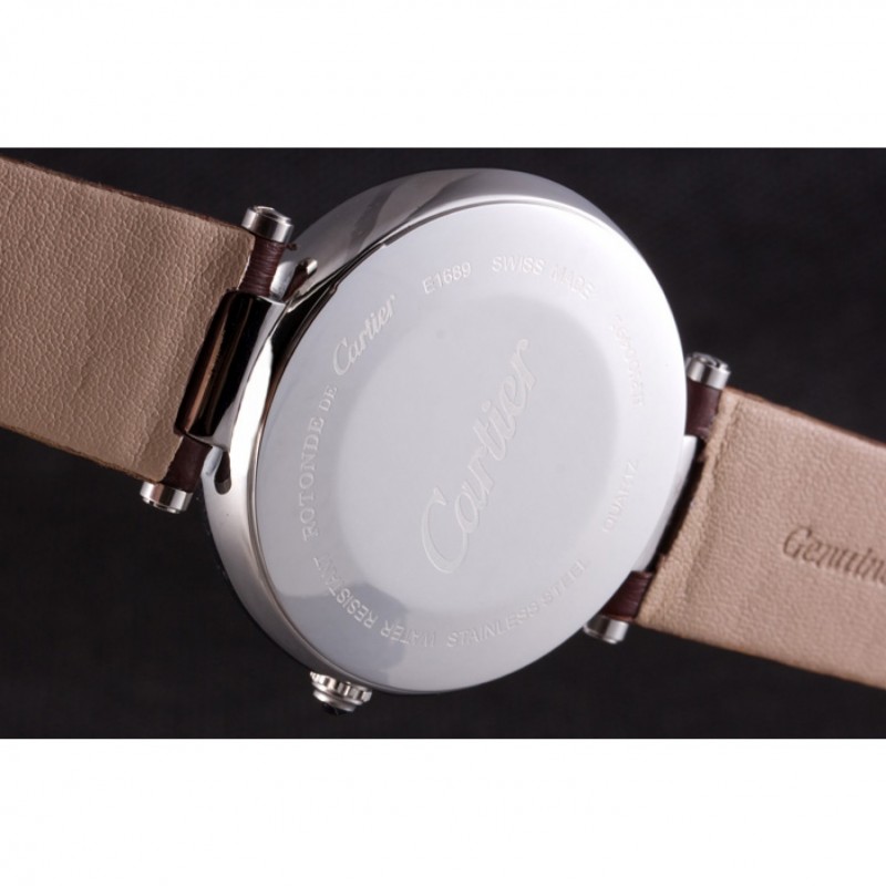 Volver: de acero inoxidable pulido complemento de vuelta con Cartier inscripción