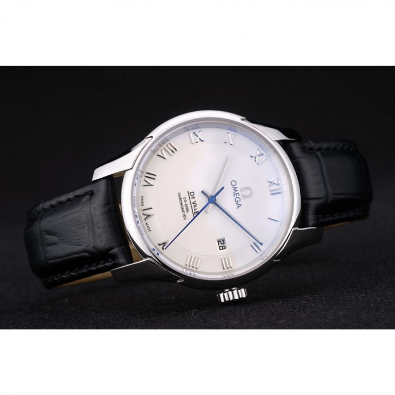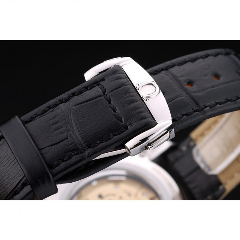 Inicio / Omega / Deville / Correa de cuero Omega DeVille suiza de acero inoxidable Bisel Negro 7620