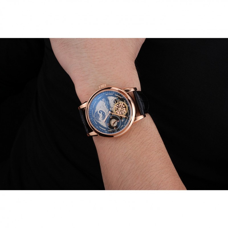 pulsera:correa de piel de cocodrilo negrocalor Patek Philippe Geneve en relieve con el logotipo y Patek Philippe inscrito rosa de 18 quilates chapado en oro gancho hebilla de cierre