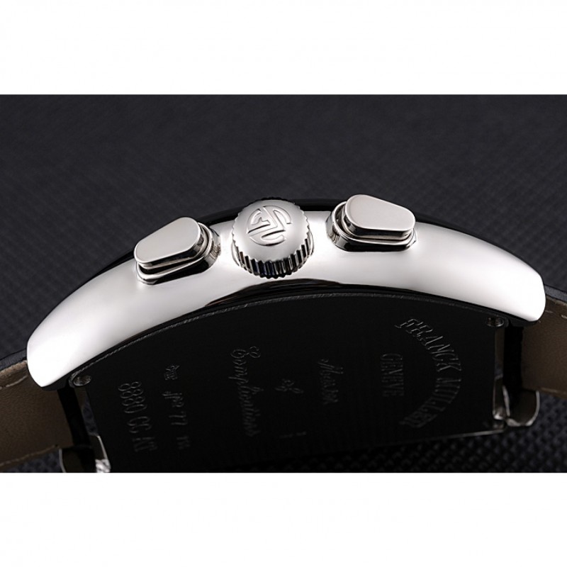 Crown: cepillado corona cutwork de acero inoxidable con logo Franck Muller y un pulsador oblonga corona en cada lado de ella
