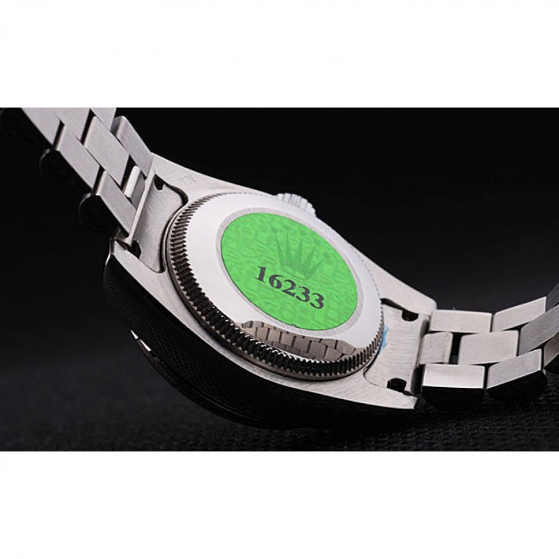 Volver: de acero inoxidable de empuje en el caso de vuelta con el logotipo verde sello Rolex