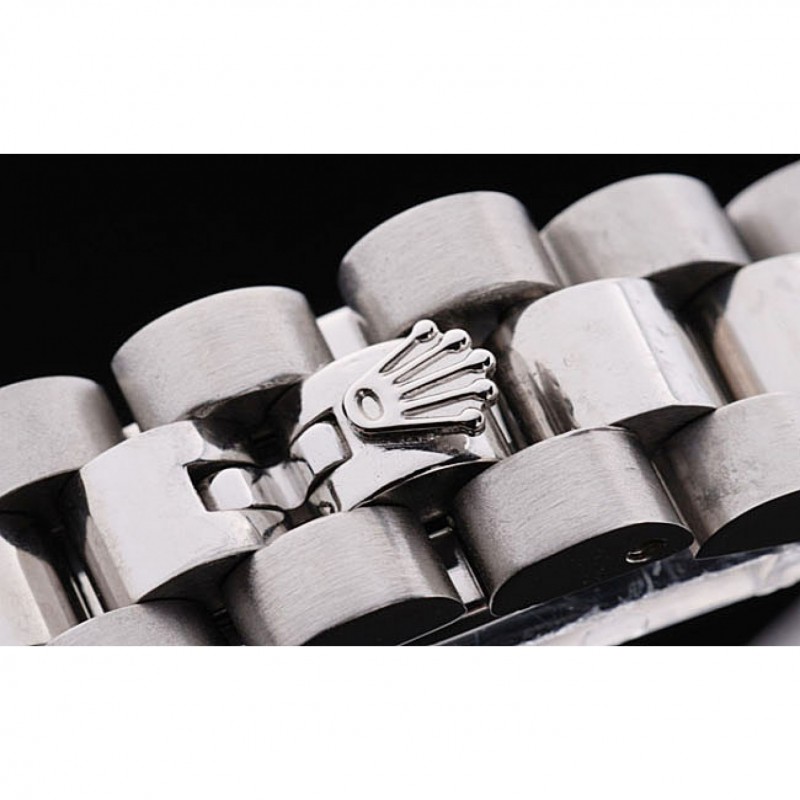 pulsera: cepillado y pulido brazalete de acero inoxidable con grabado Rolex plegable en cierre desplegable que muestra el logotipo de Rolex