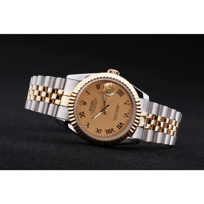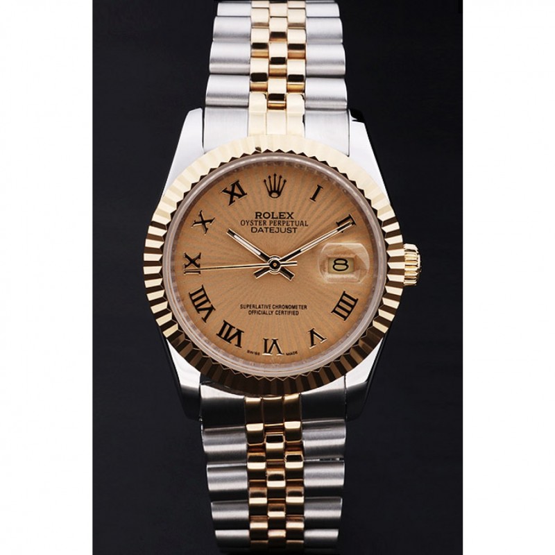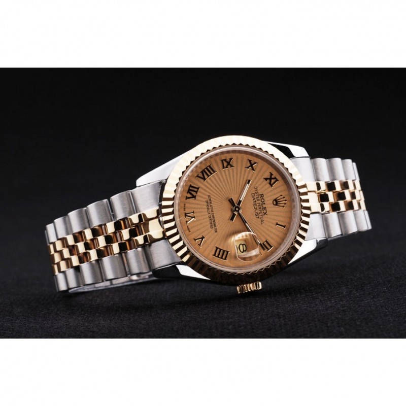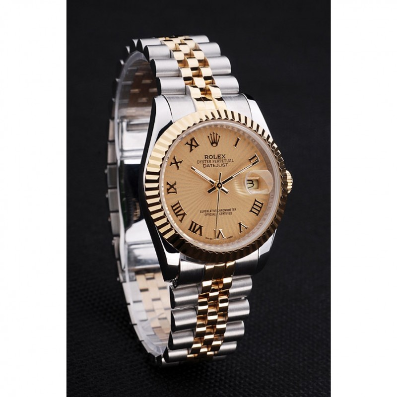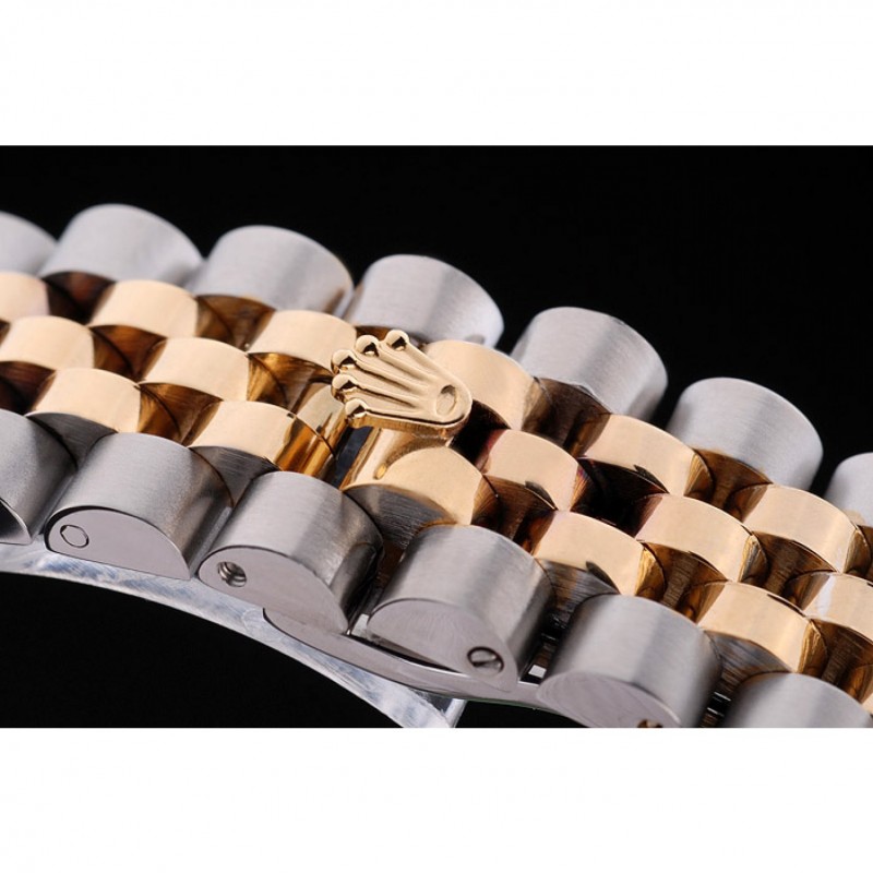 pulsera: Dos tonificado brazalete de eslabones en acero inoxidable cepillado y oro amarillo de 18K chapado en acero con el grabado Rolex cierre oculto que muestra el logotipo de Rolex