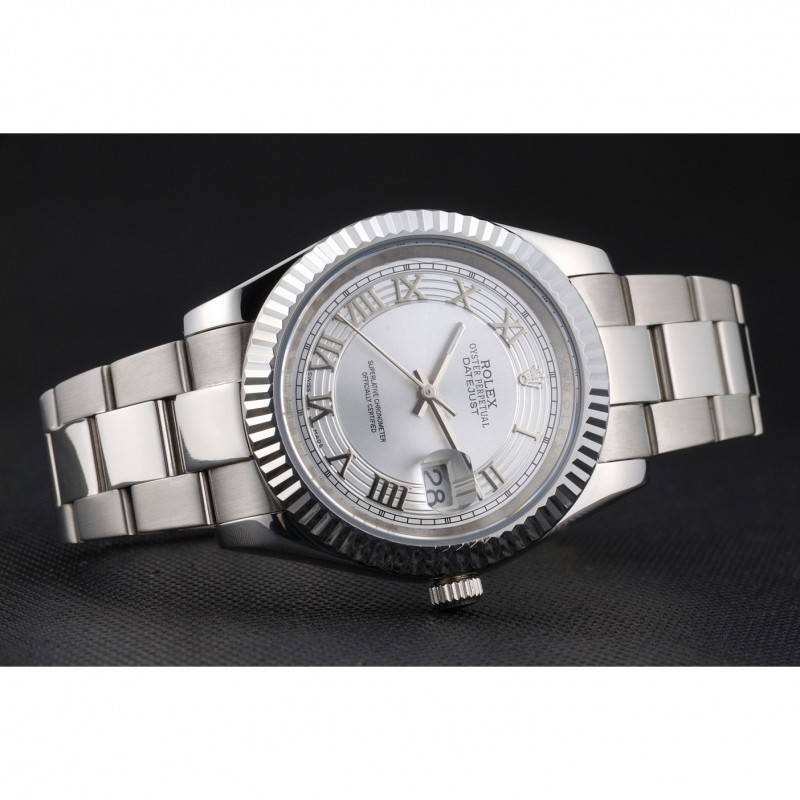 pulsera: cepillado y la cadena de eslabones de acero inoxidable pulido con el doblez sobre el corchete y Rolex grabado de la corona