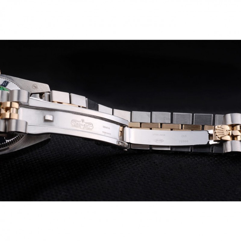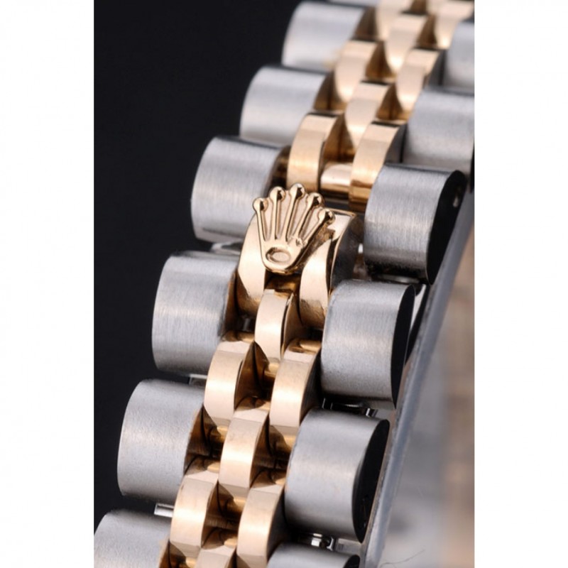 pulsera: Dos tonificado brazalete de eslabones en acero inoxidable cepillado y oro amarillo de 18K chapado en acero con el grabado Rolex cierre oculto que muestra el logotipo de Rolex