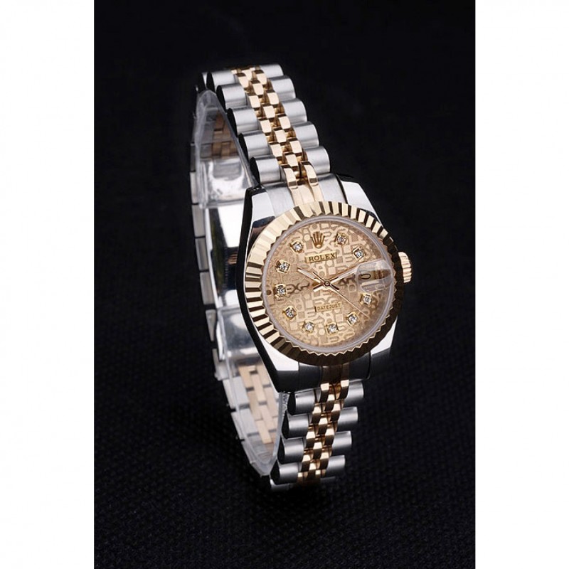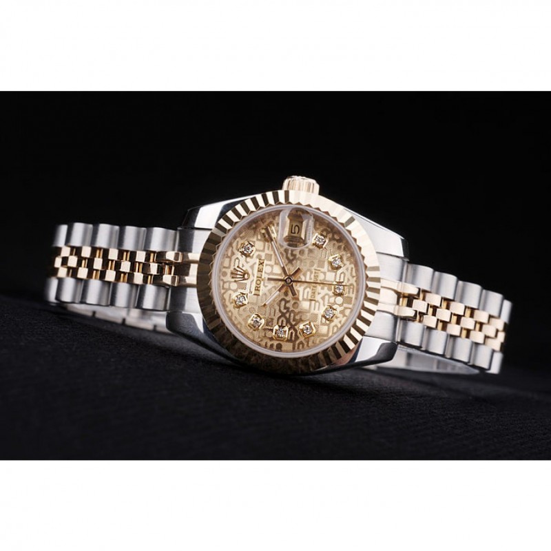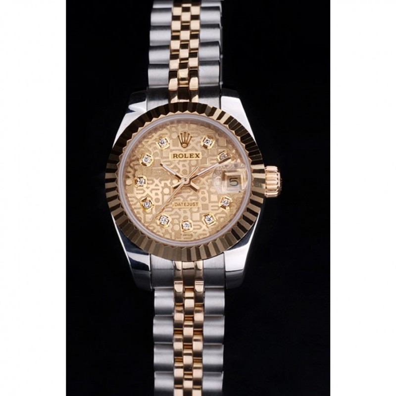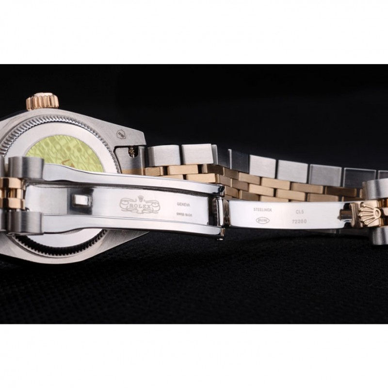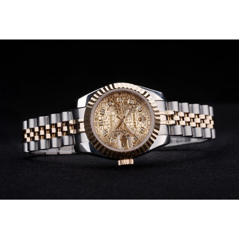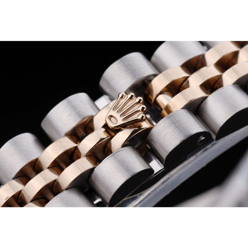 pulsera: Dos tonificado brazalete de eslabones en acero inoxidable cepillado y oro amarillo de 18K chapado en acero con el grabado Rolex cierre oculto que muestra el logotipo de Rolex