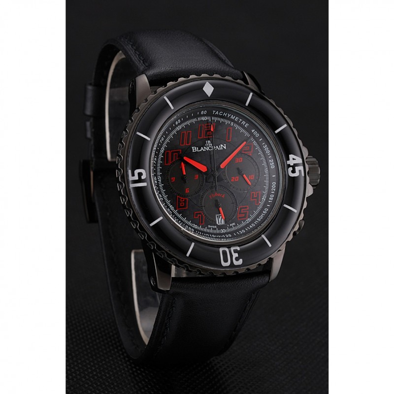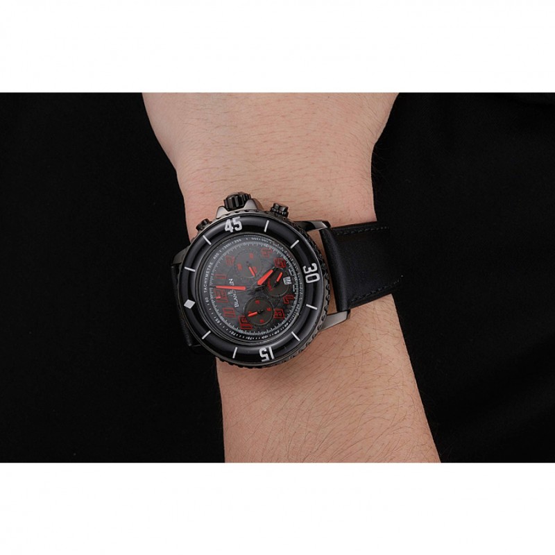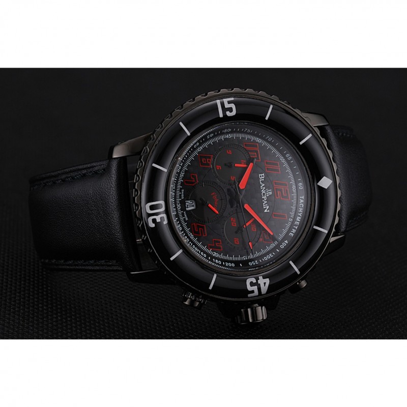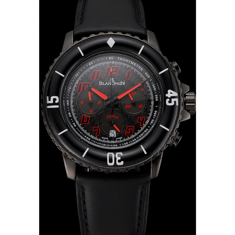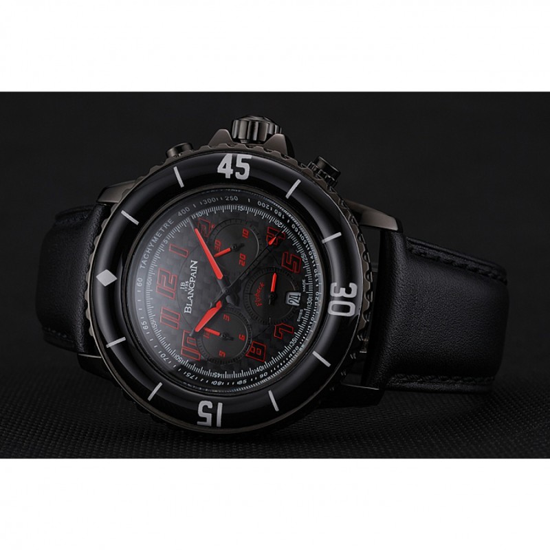 Inicio / Blancpain / Dial Blancpain Cincuenta Brazas comando de velocidad fibra de carbono con la correa de cuero rojo Marcas Negro PVD Negro 1453775