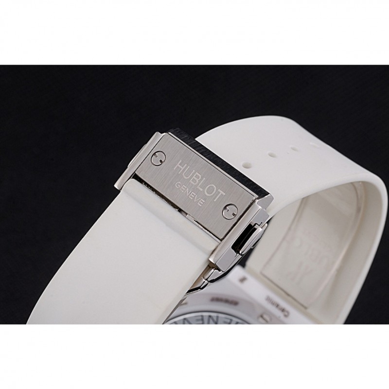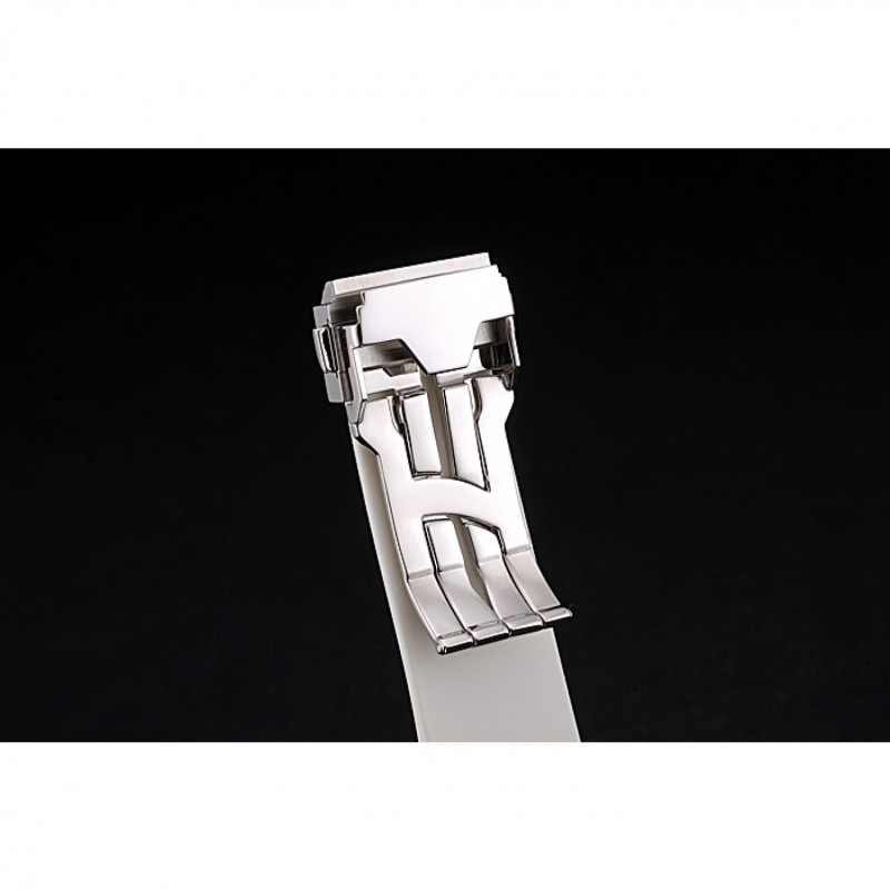 pulsera: Hublot Geneve y correa de caucho blanco en relieve calor logo con Hublot Geneve grabado de acero inoxidable cepillado gancho de liberación empuje corchete