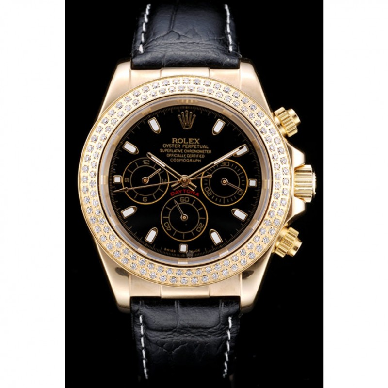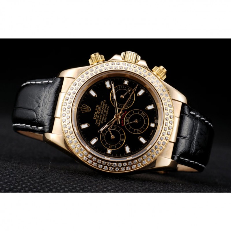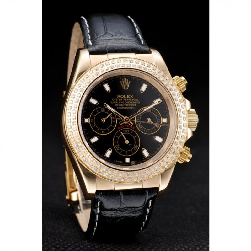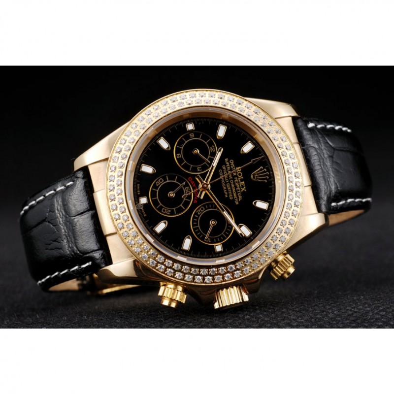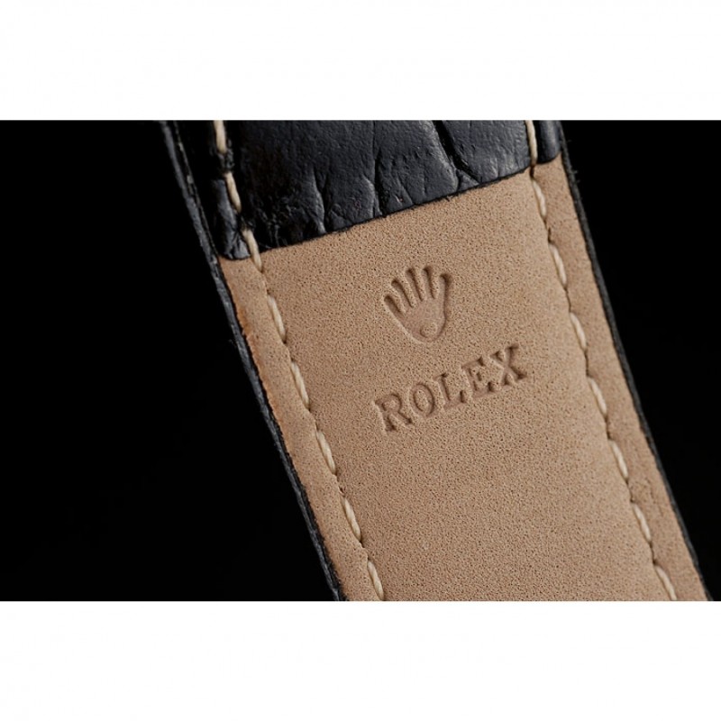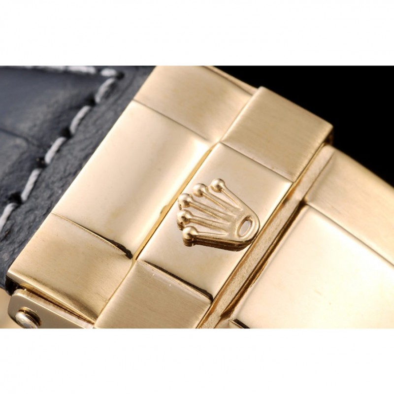 pulsera: correa de piel de cocodrilo negro en relieve de calor Rolex con grabado cierre desplegable de oro amarillo con el logotipo de Rolex en la parte superior
