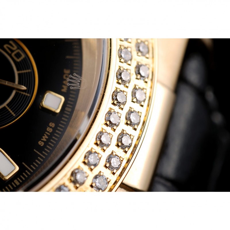 Corona : 18k corona amarilla calado de oro con el logotipo de Rolex y dos botones coronas cutwork empuje más pequeños a cada lado de la misma