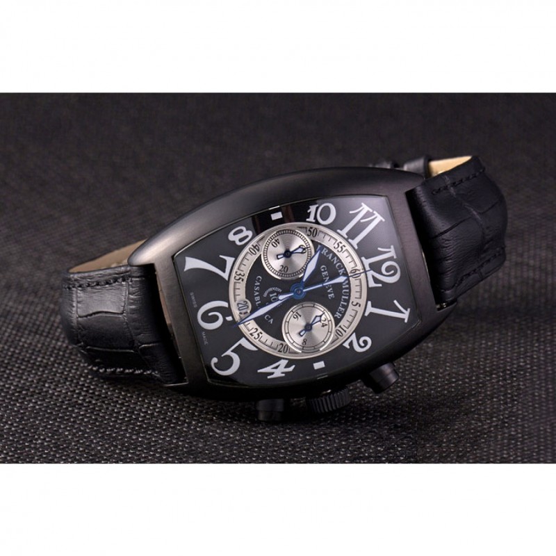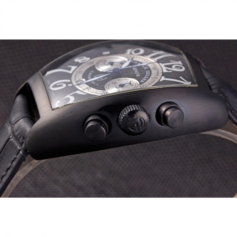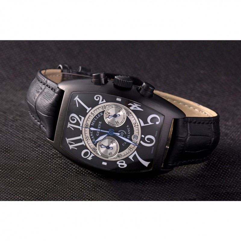 pulsera: correa de piel de cocodrilo negro calor Franck Muller Geneve en relieve con cierre de gancho hebilla ion-plateado