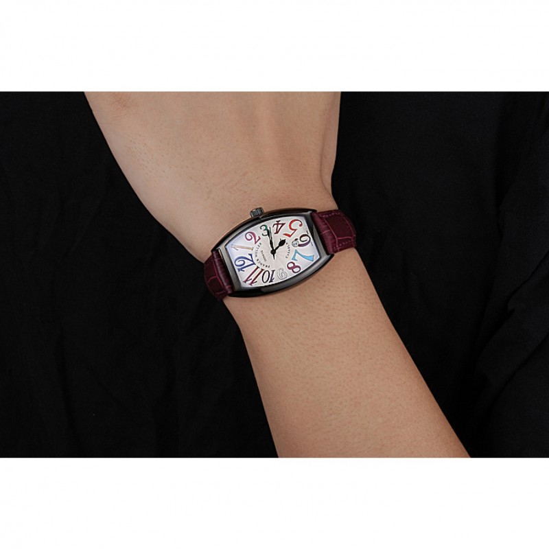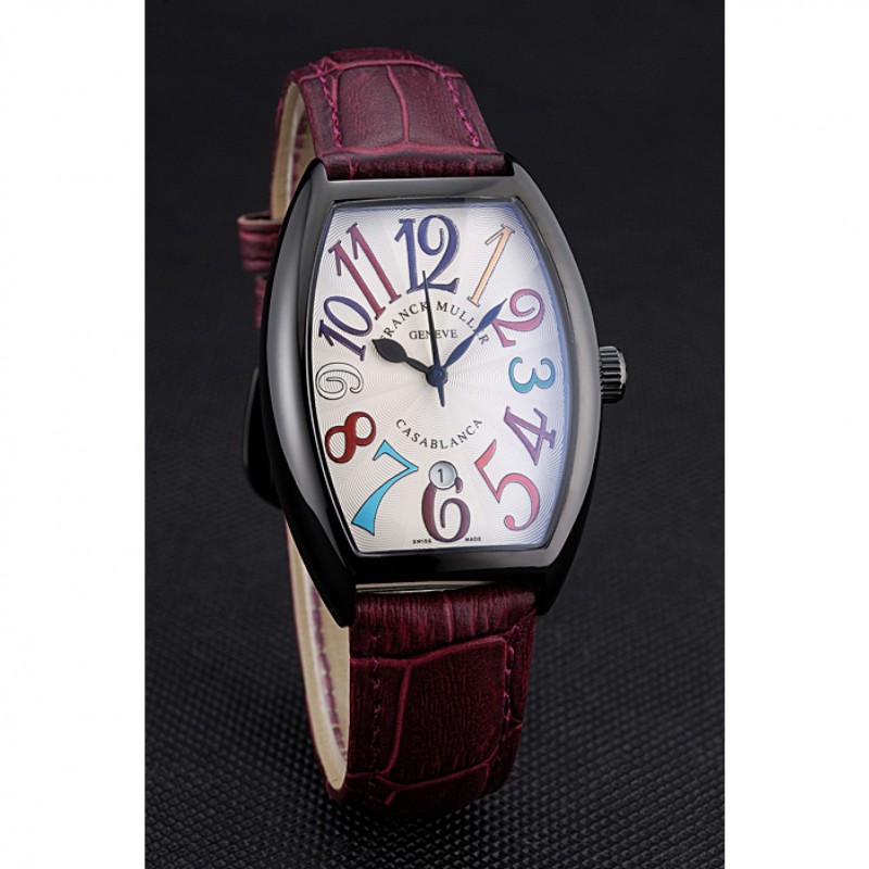 pulsera: calor Franck Muller Geneve en relieve cocodrilo púrpura correa de cuero con Franck Muller inscrito ion-plateado broche de gancho hebilla