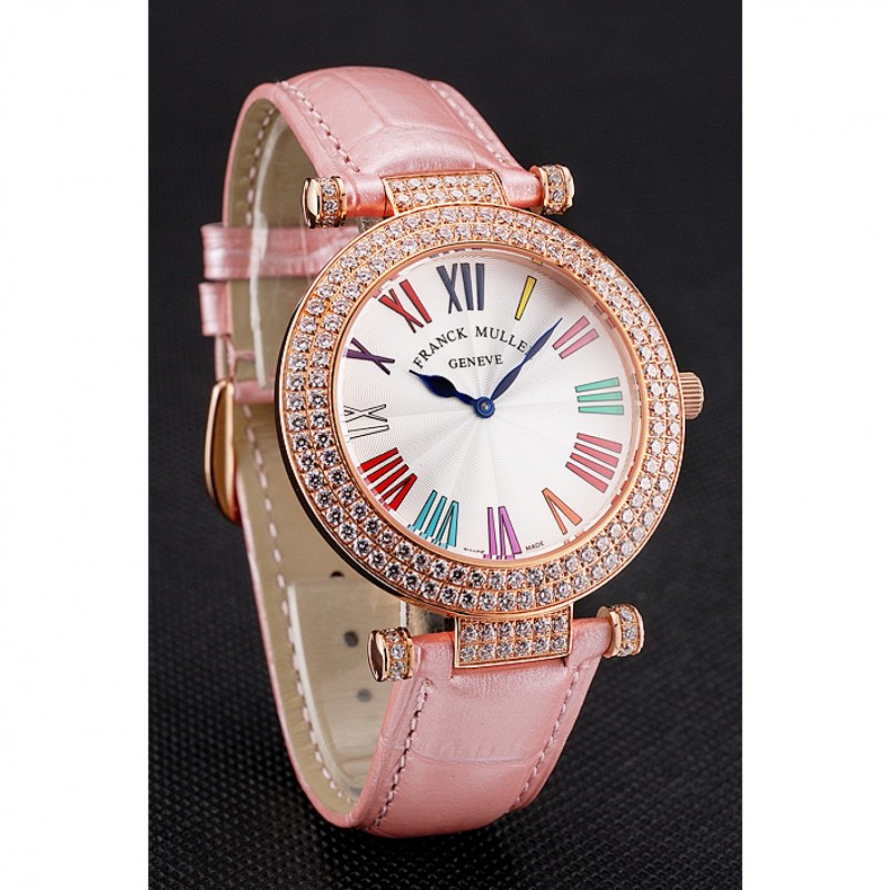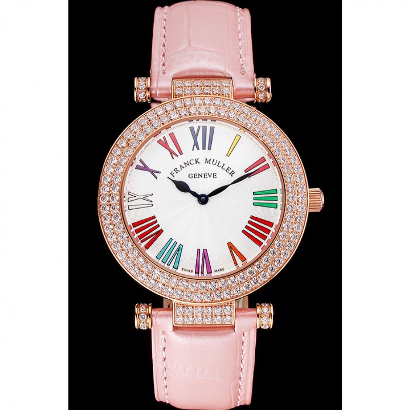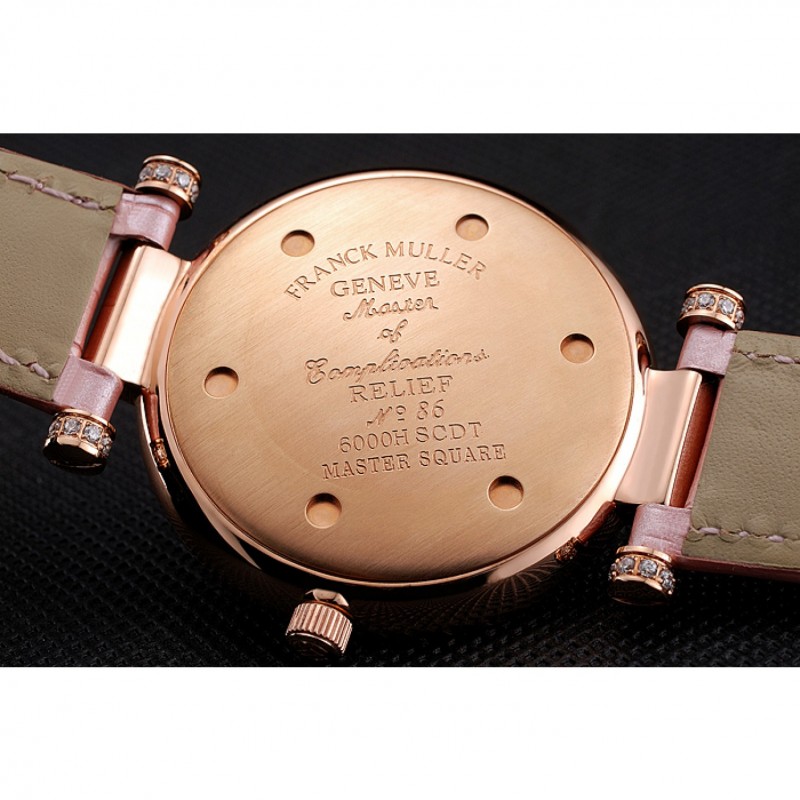pulsera:correa de cuero de color rosa cocodrilocalor Franck Muller Geneve en relieve con el diamante 18k incrustaciones rosa-chapado en oro de gancho hebilla de cierre