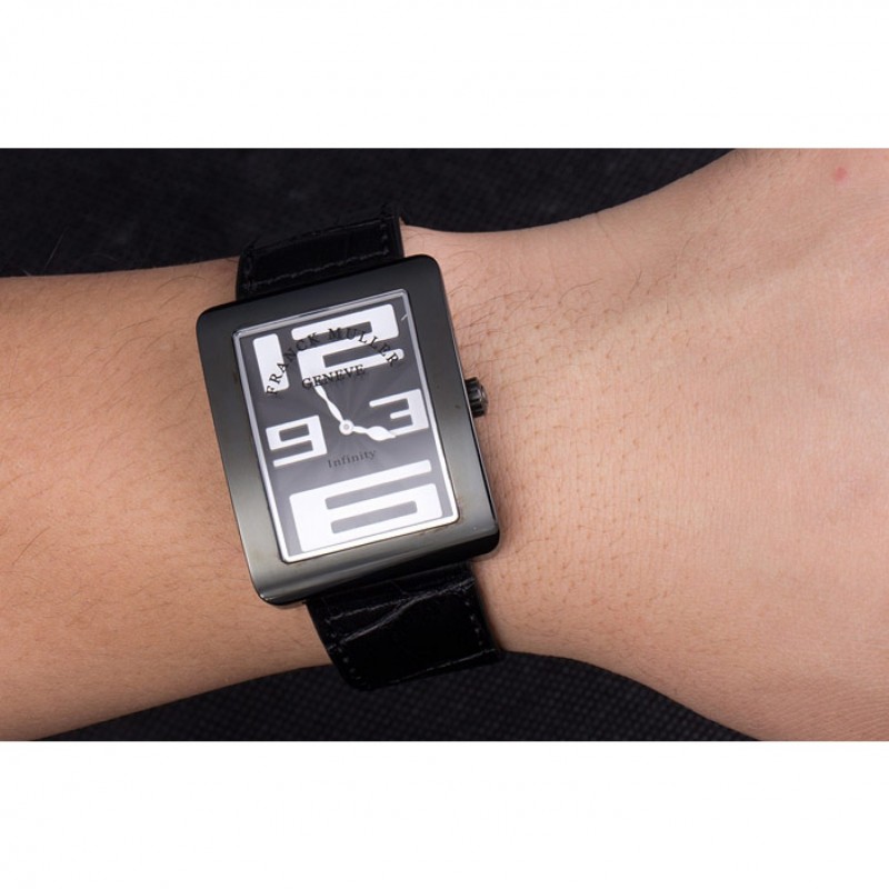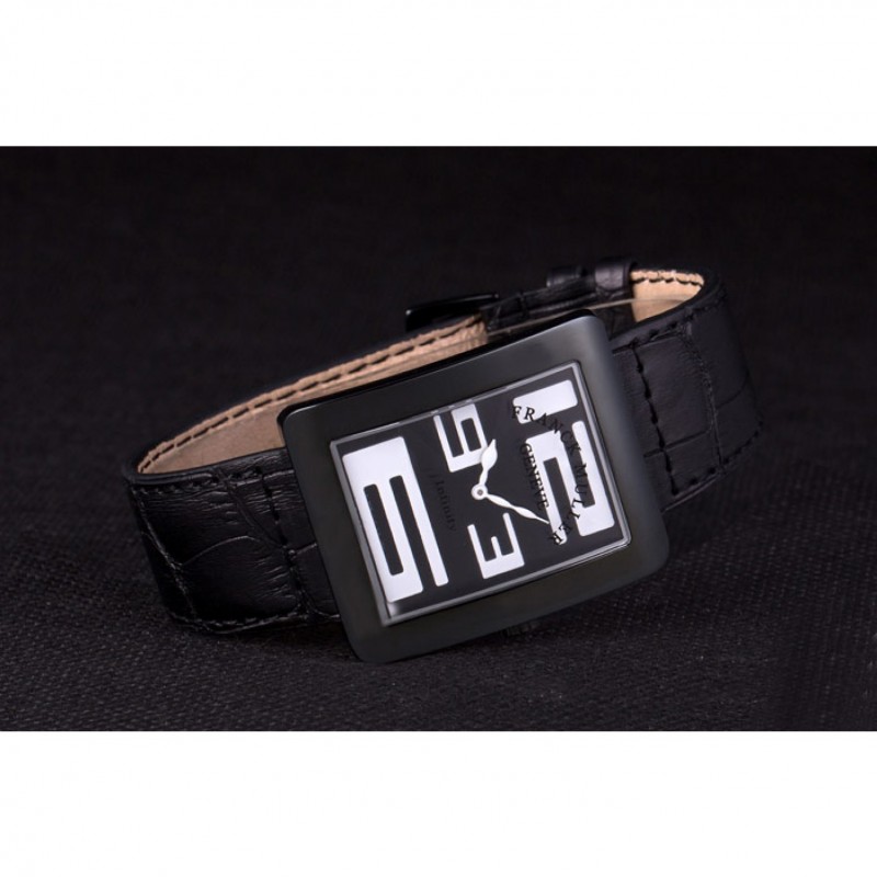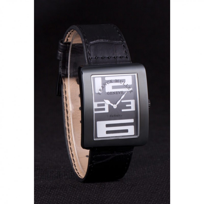 pulsera: calor Franck Muller Geneve en relieve negro correa de piel de cocodrilo con Franck Muller grabado ion-plateado broche de gancho hebilla