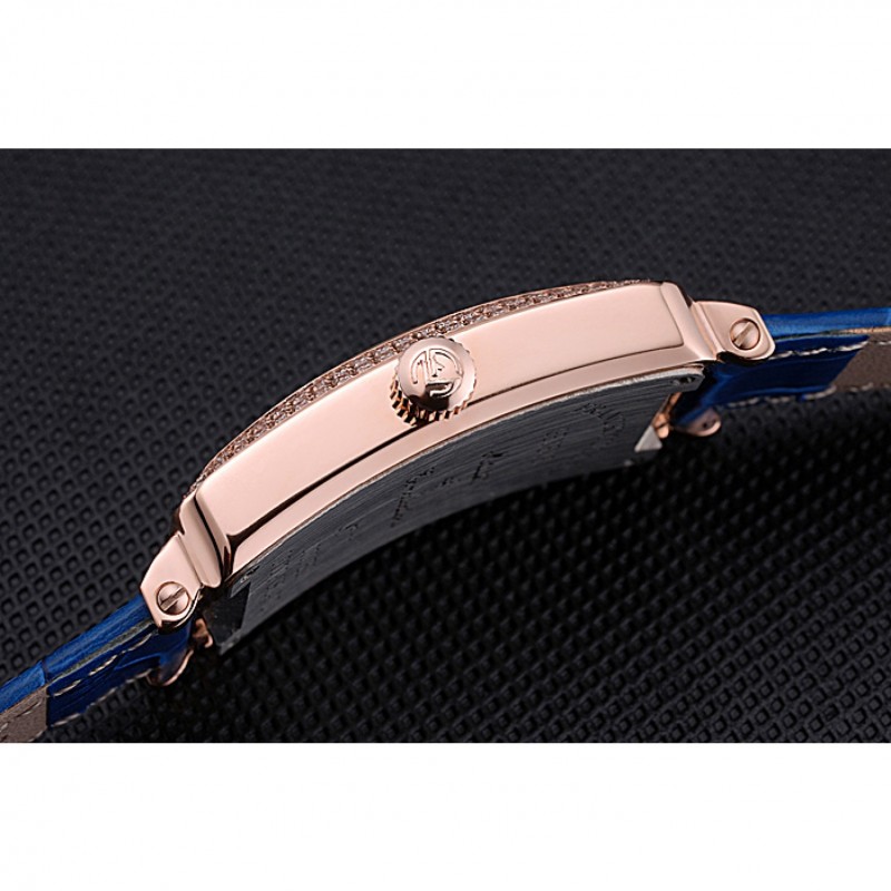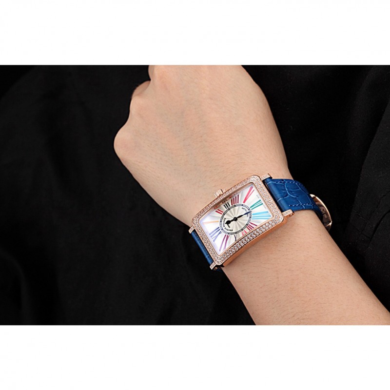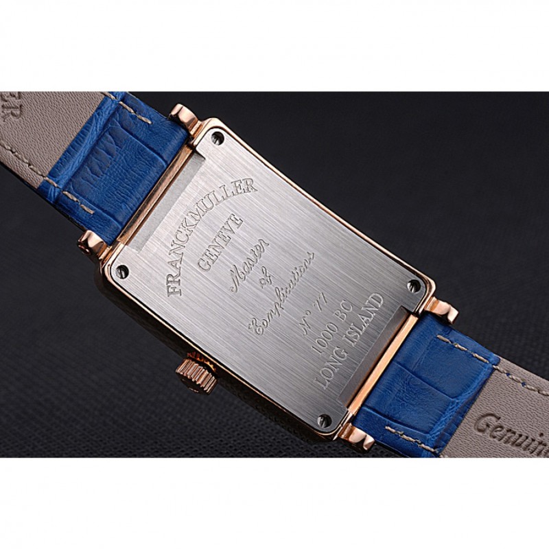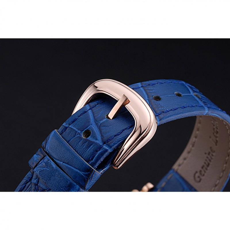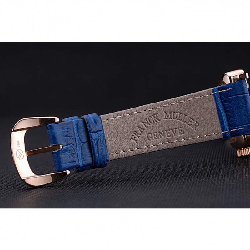 pulsera: Franck calor Muller en relieve correa de piel de cocodrilo azul con rosa de 18 quilates chapado en oro gancho hebilla de cierre