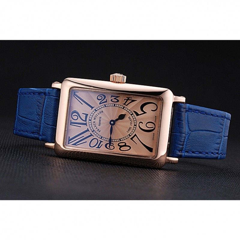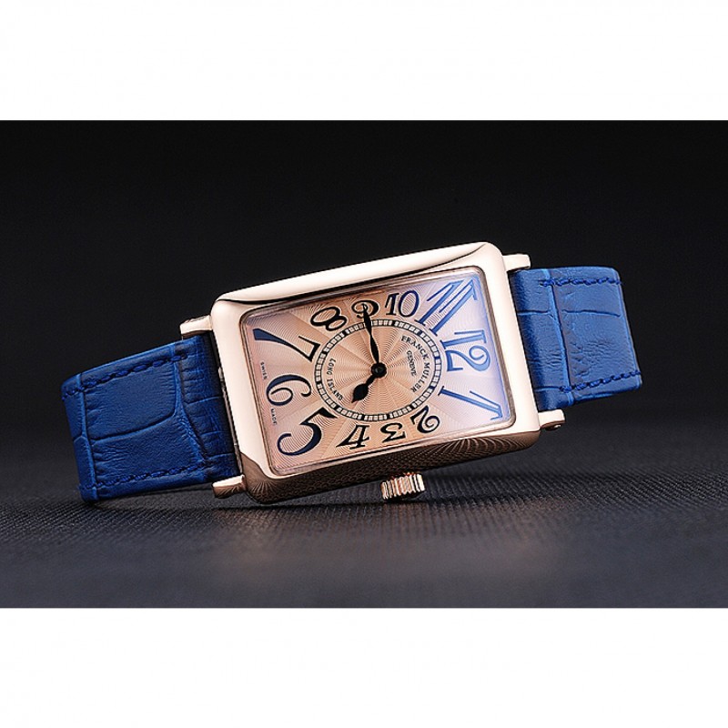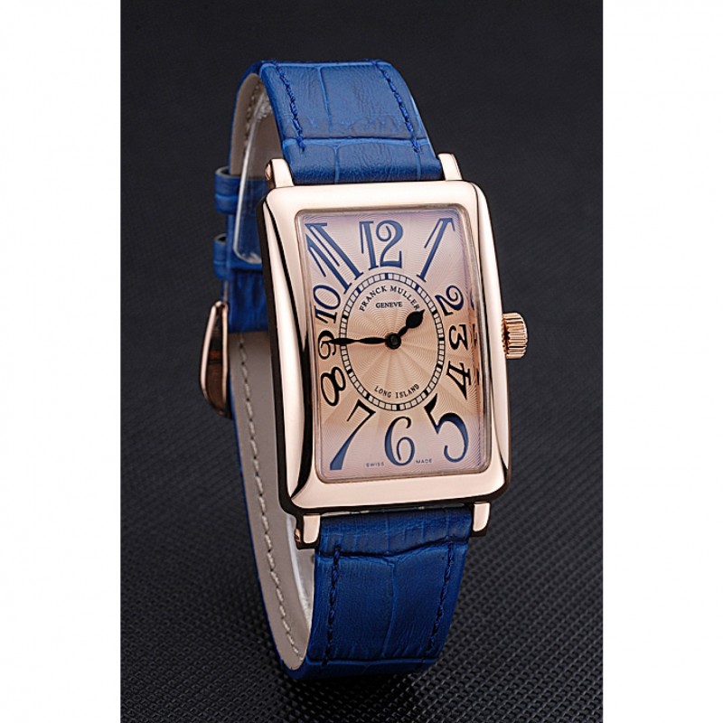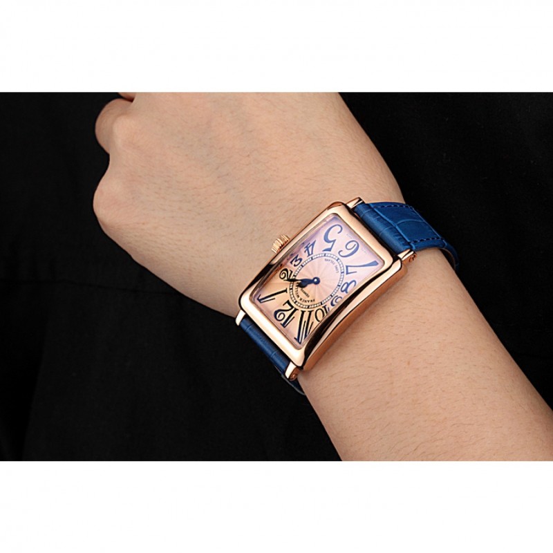 pulsera: calor Franck Muller correa de piel de cocodrilo azul en relieve rosa de 18 quilates chapado en oro gancho hebilla de cierre