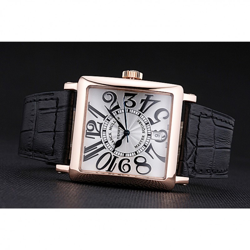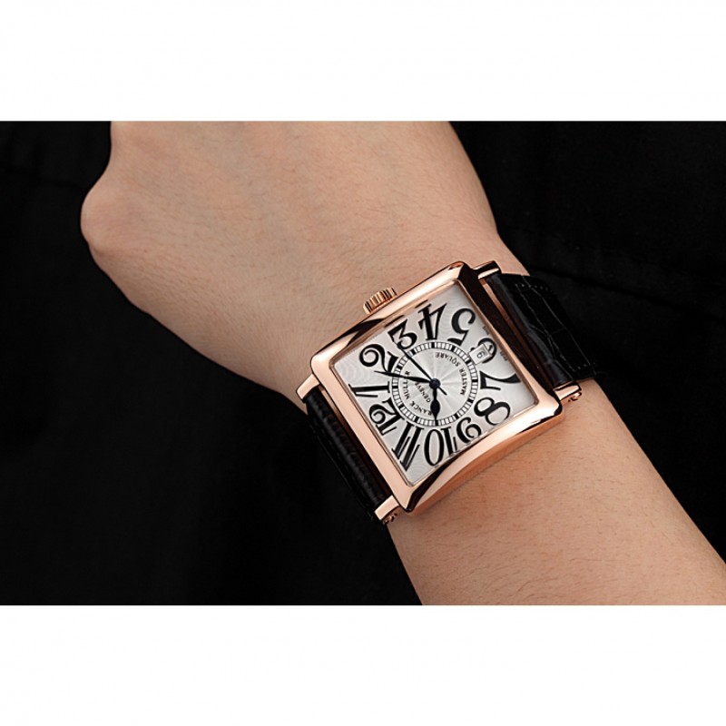 pulsera: relieve calor Franck Muller correa de piel de cocodrilo negro con rosa de 18 quilates chapado en oro gancho hebilla de cierre