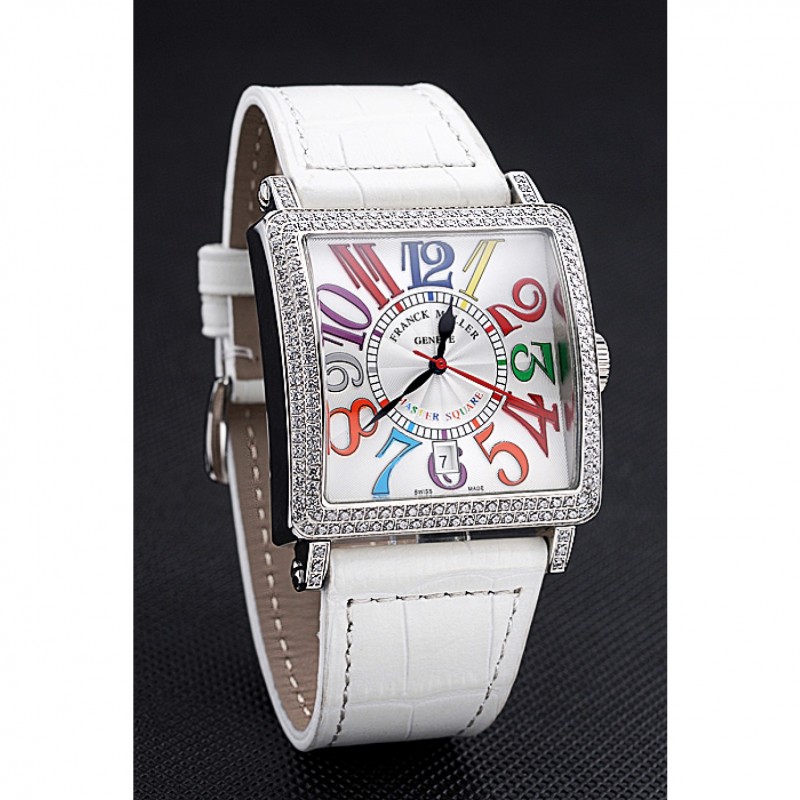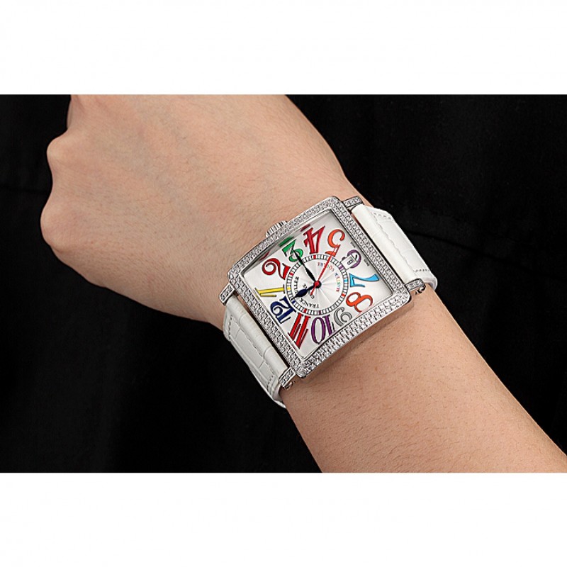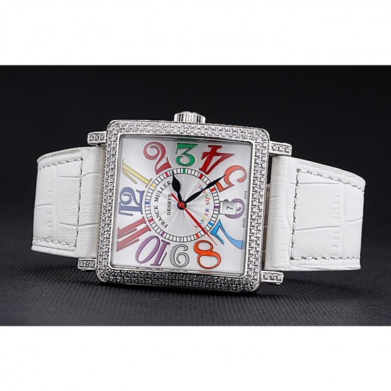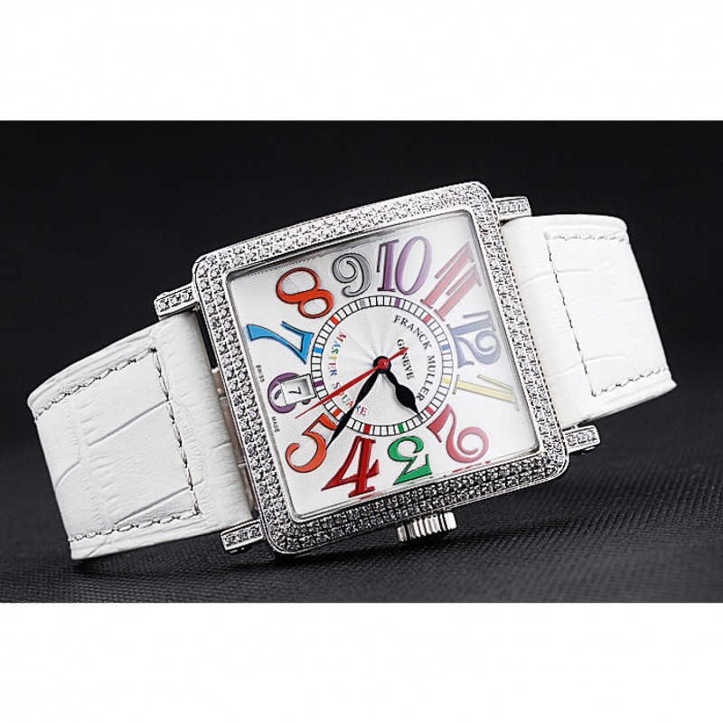 Inicio / Franck Muller / Franck Muller Maestro Plaza Sueños de color diamantes caja blanca banda de cuero 622356