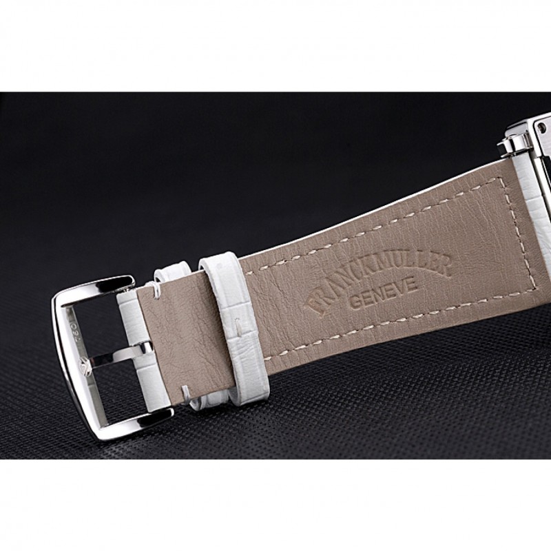 pulsera: correa de cuero de calor Franck Muller en relieve cocodrilo blanco con pendiente de diamante pulido de acero inoxidable gancho hebilla de cierre