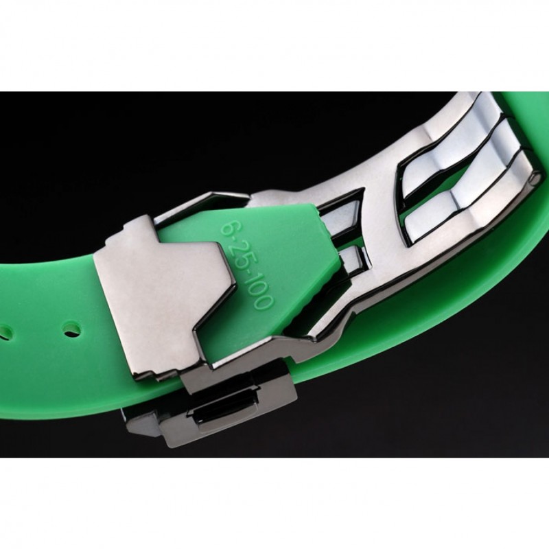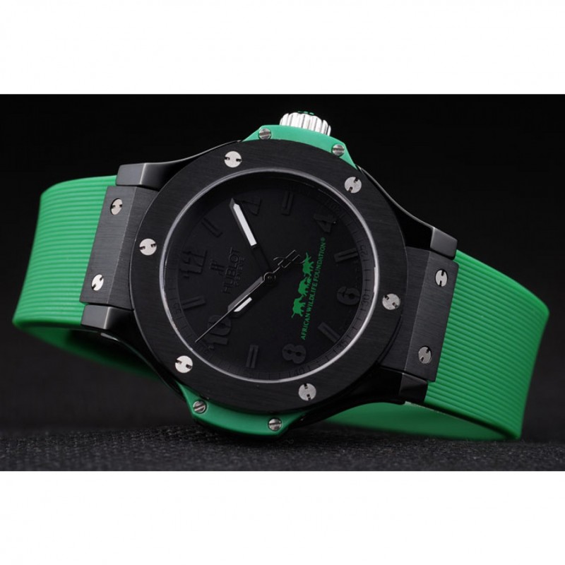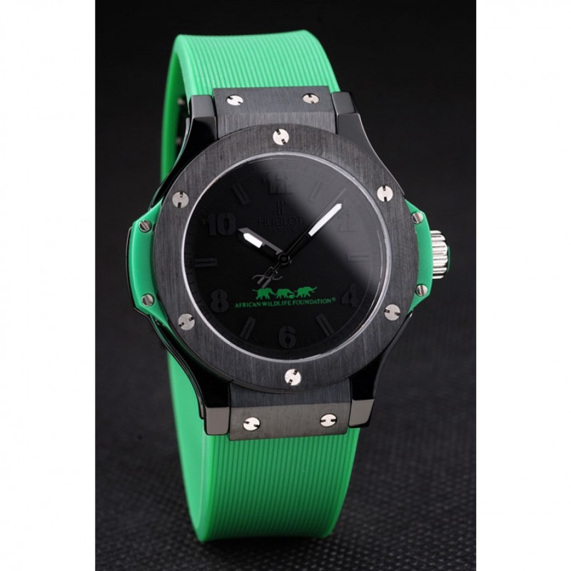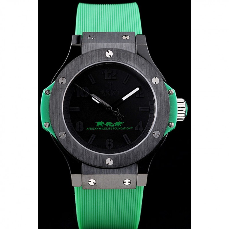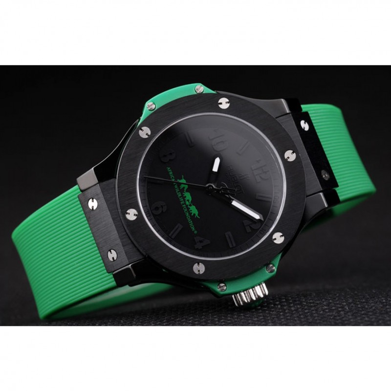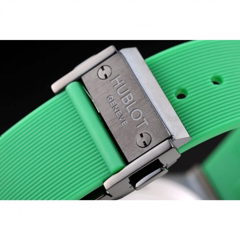 pulsera: Hublot calor Geneve en relieve acanalado correa de caucho verde con Hublot Geneve grabado cepillado de empuje de acero gancho de liberación inoxidable cierre