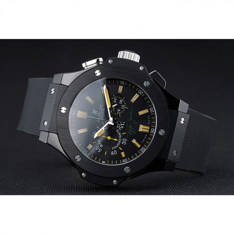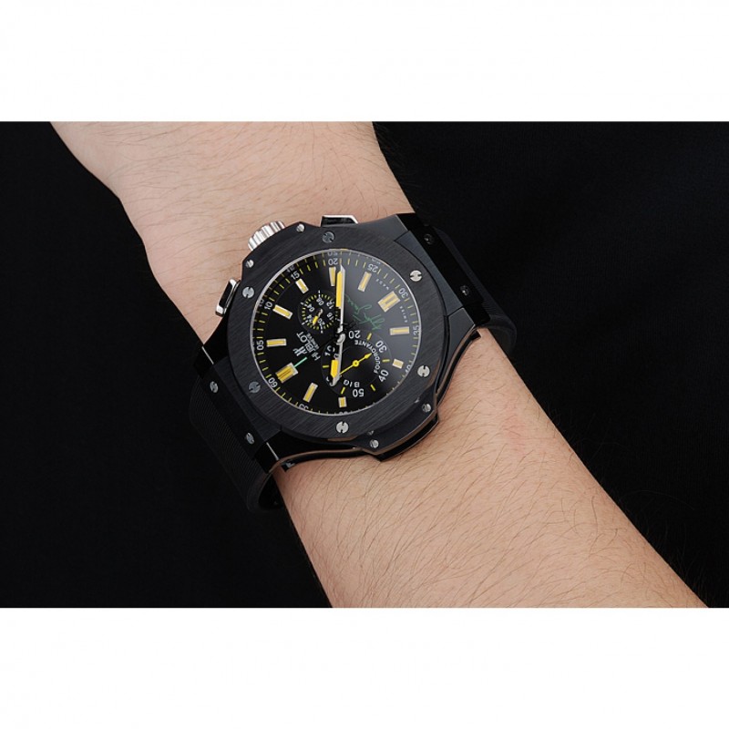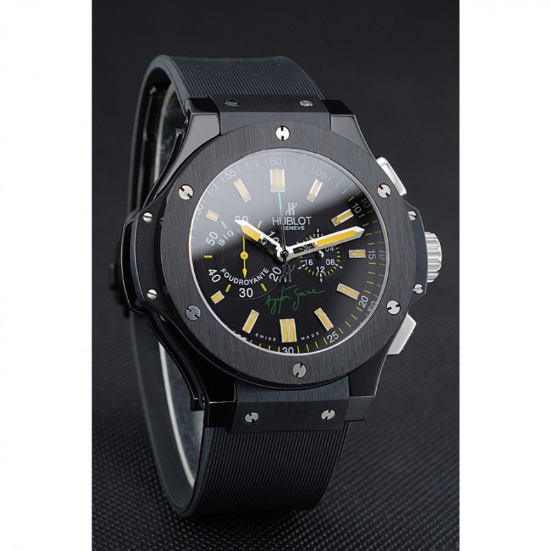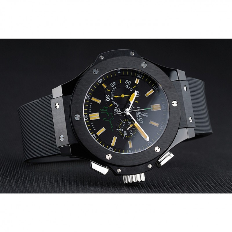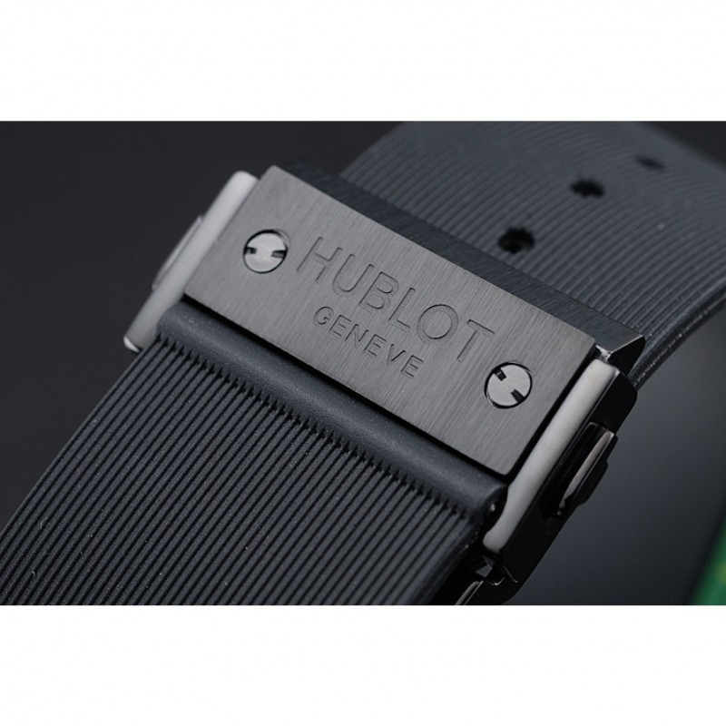 pulsera: Heat en relieve logotipo y correa de caucho negro Hublot Geneve con Hublot Geneve grabado doblar-sobre ion-plateado gancho de liberación empuje corchete
