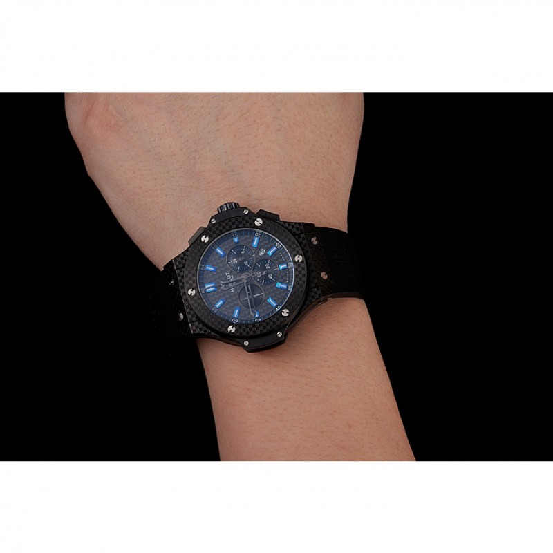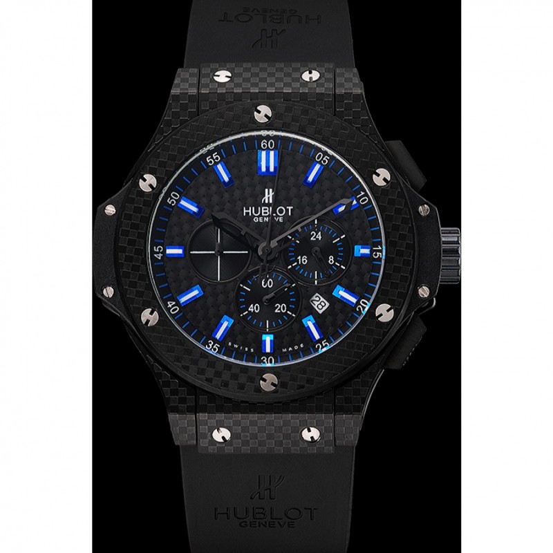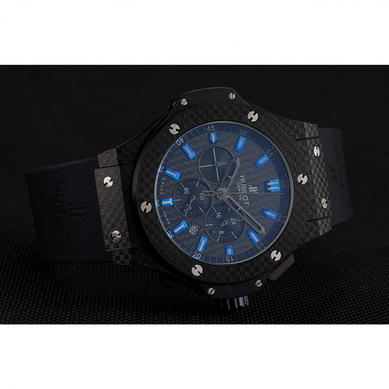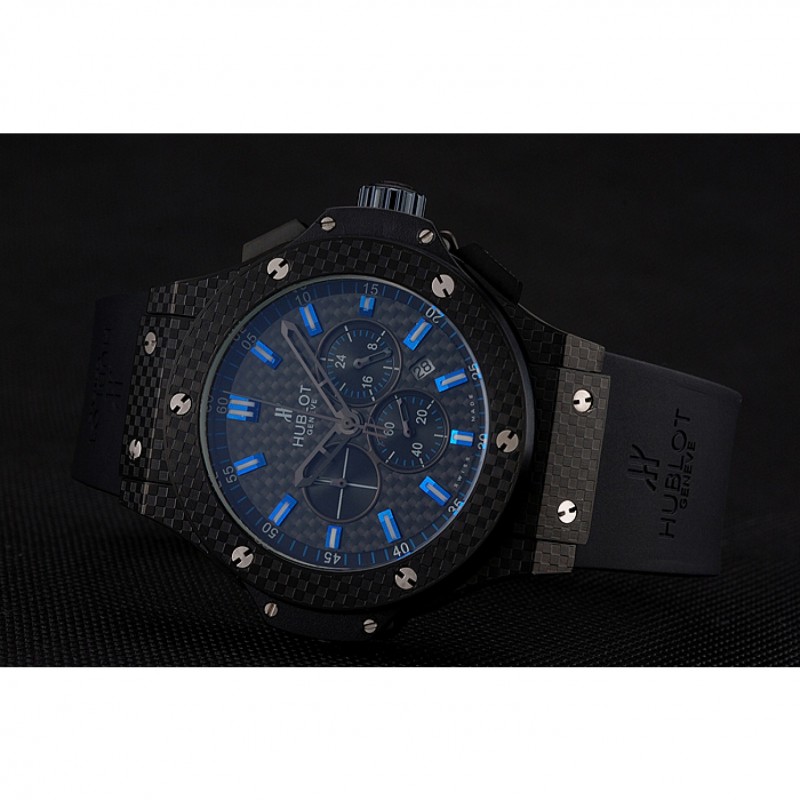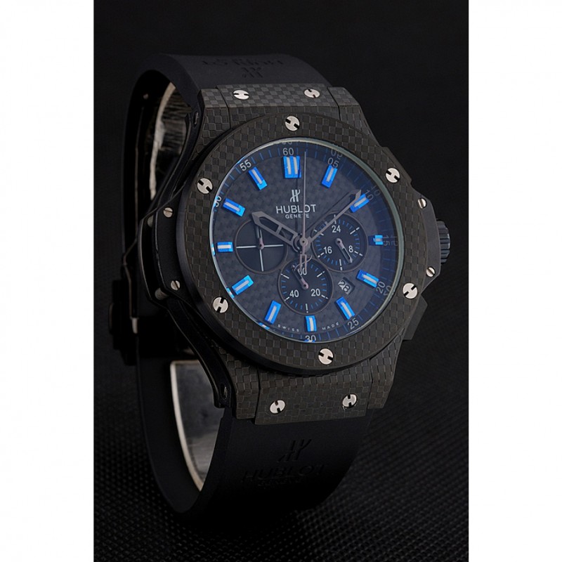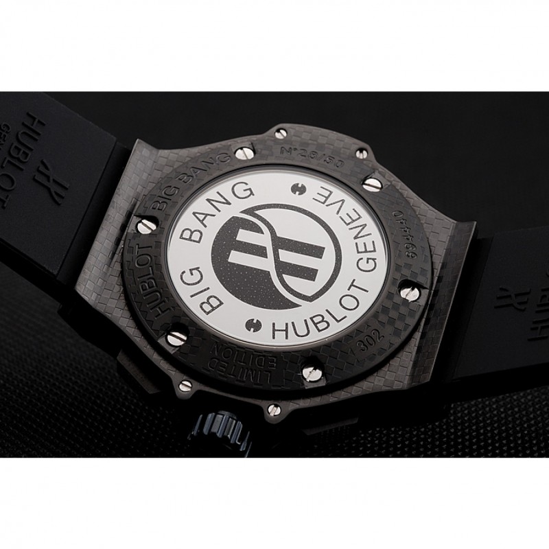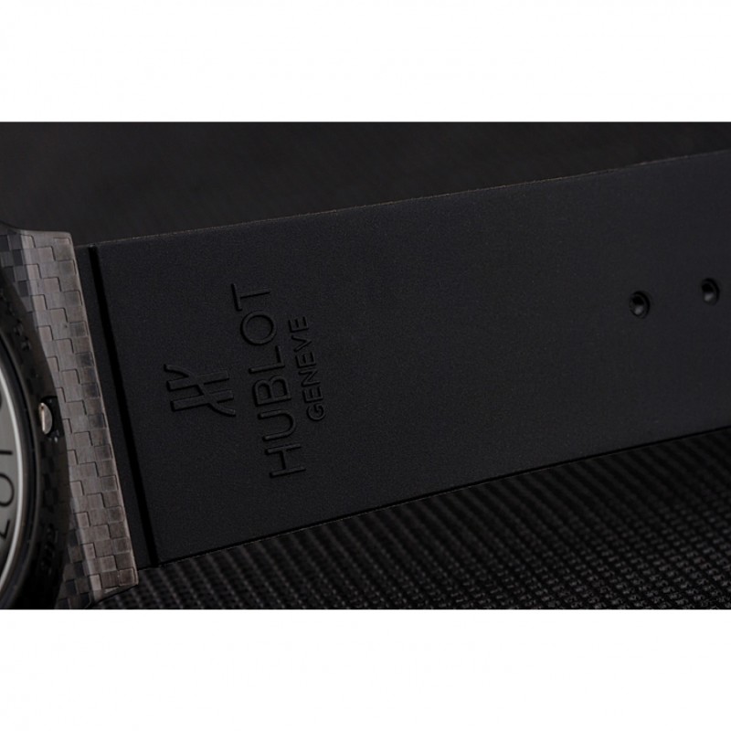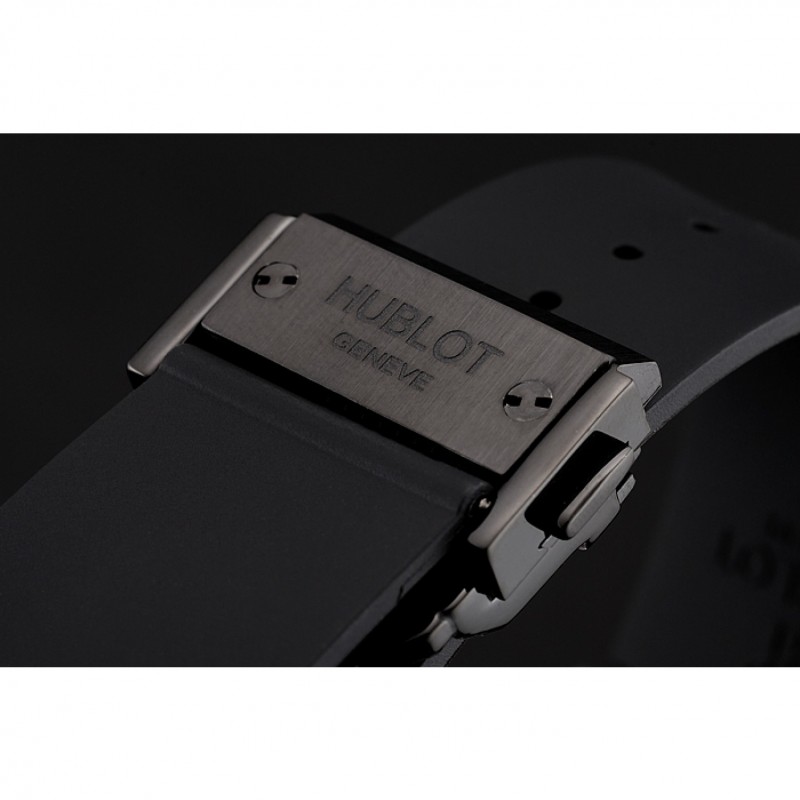 pulsera: Logo y correa de caucho negro en relieve calor Hublot Geneve con Hublot Geneve grabado ion-plateado push-liberación gancho corchete