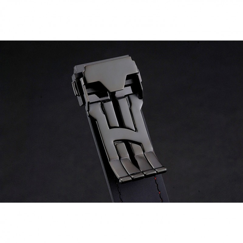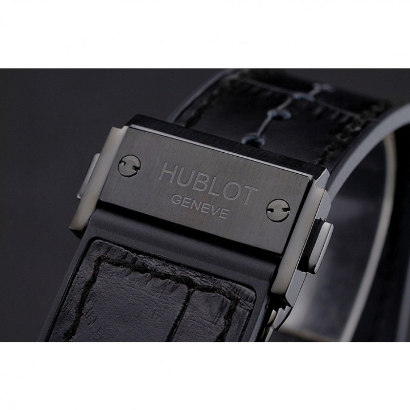 pulsera: Logo y correa de cuero Hublot Geneve calor en relieve negro con costuras hilo rojo y Hublot Geneve grabado corchete del gancho de liberación empuje ion-plateado