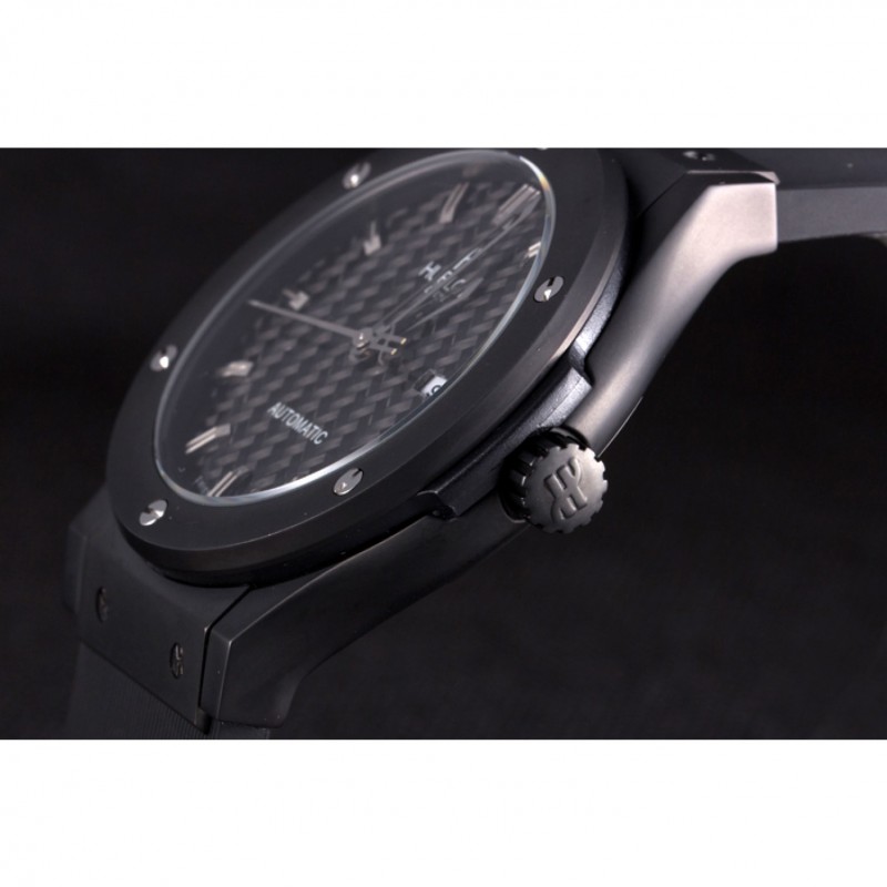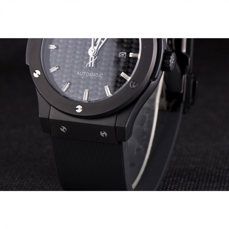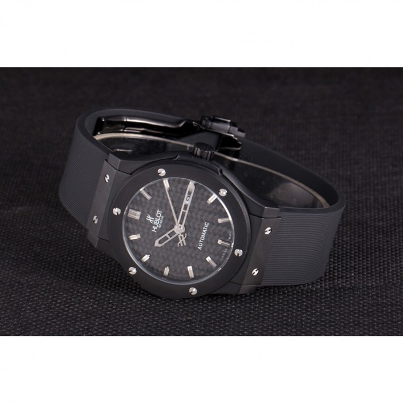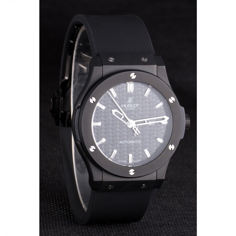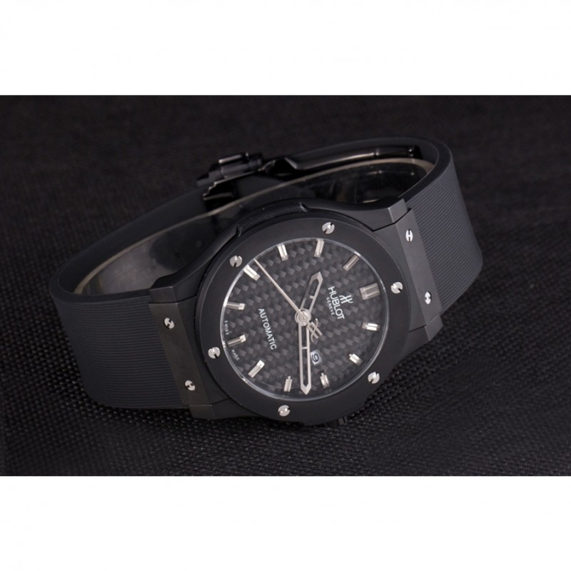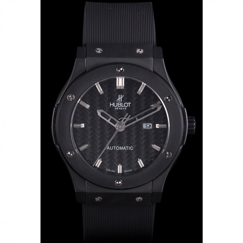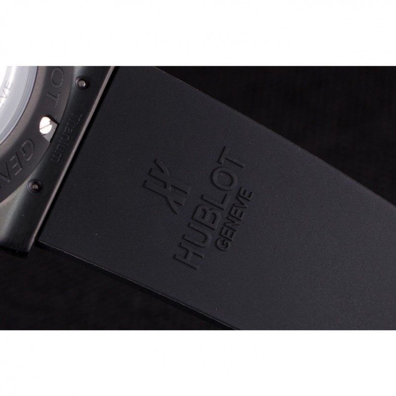 pulsera: calor Hublot Geneve en relieve acanalado negro correa de caucho con Hublot Geneve grabado ion-plateado empuje gancho de liberación corchete