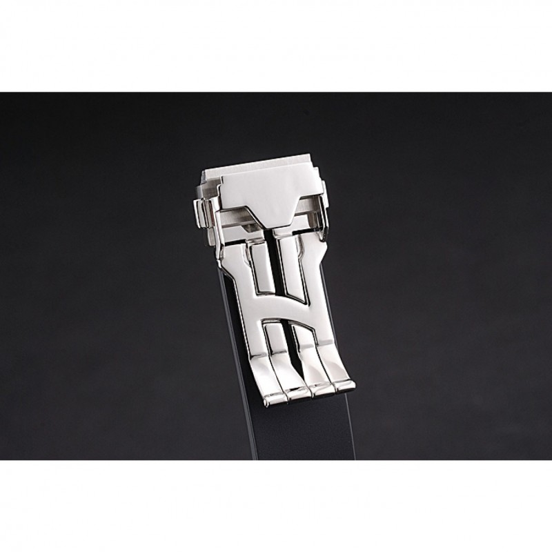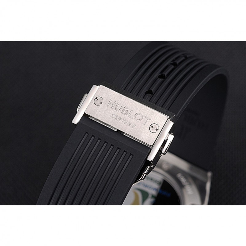 pulsera: Logo y el calor Hublot Geneve en relieve correa de caucho negro acanalado con Hublot Geneve grabado de acero inoxidable cepillado gancho de liberación empuje corchete