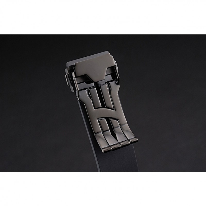 pulsera: Logo y el calor Hublot Geneve en relieve correa de caucho negro acanalado con Hublot Geneve grabado ion-plateado push-liberación gancho corchete