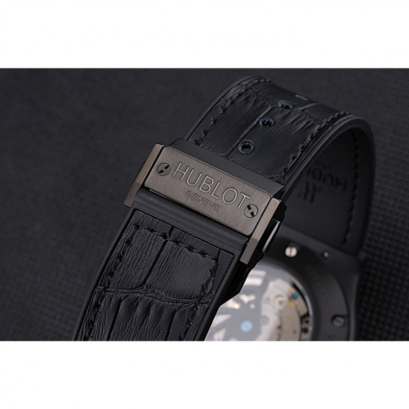 pulsera: logo y Hublot Geneve correa de piel de cocodrilo negro en relieve de calor con Hublot Geneve grabado de ion-plateado broche de gancho