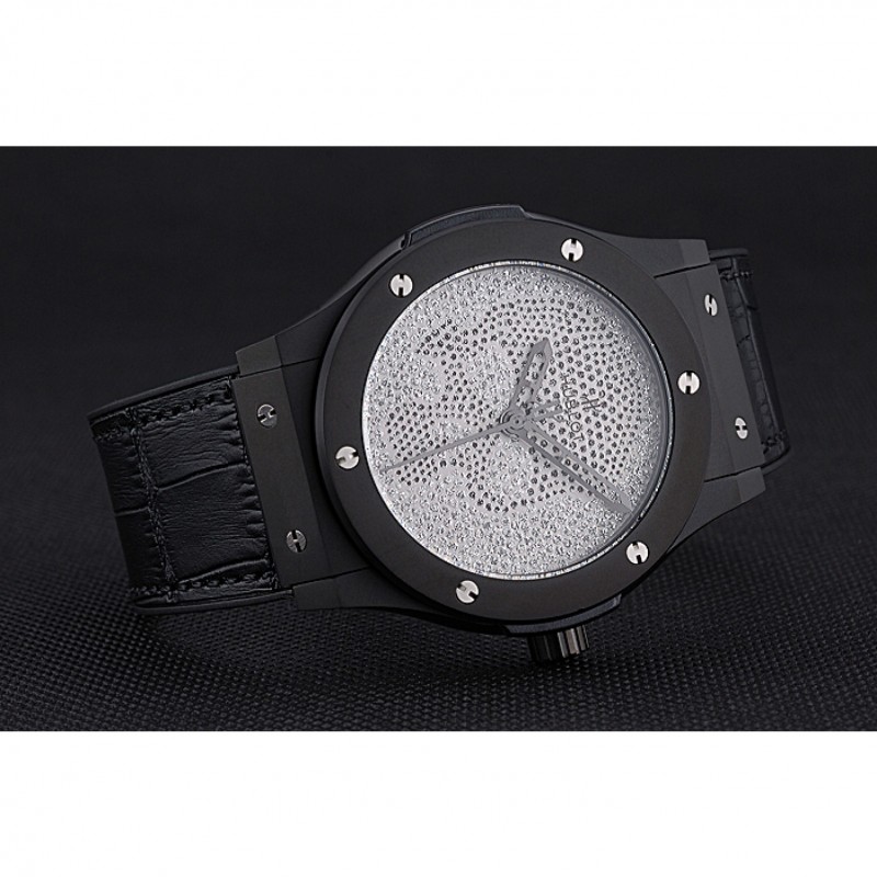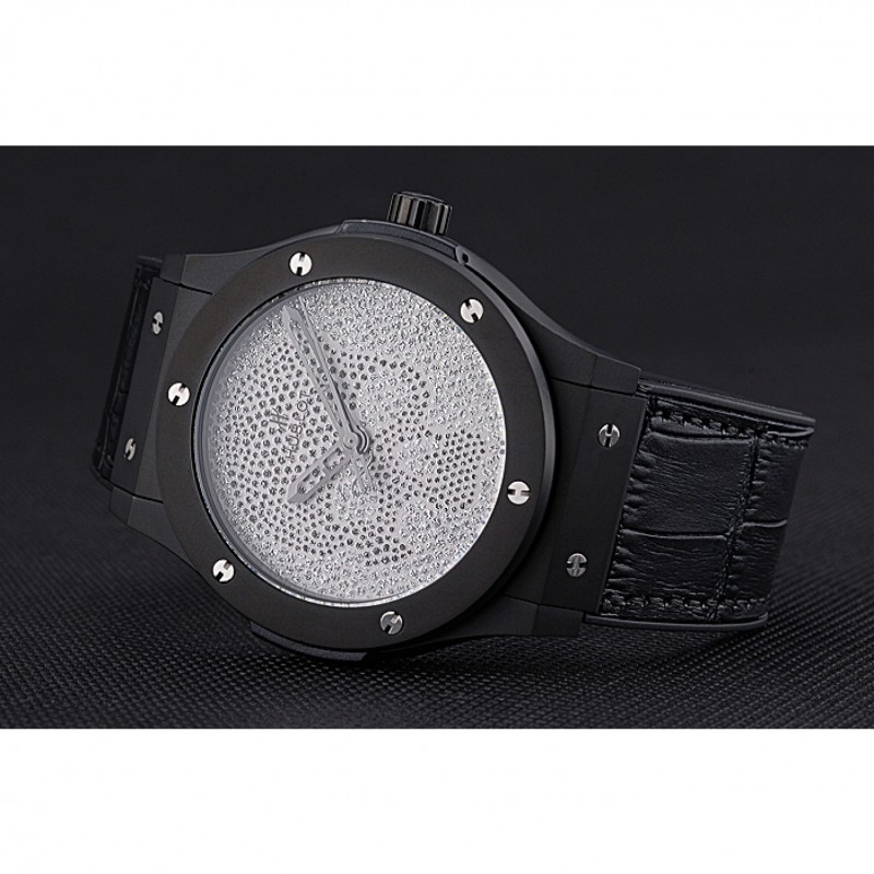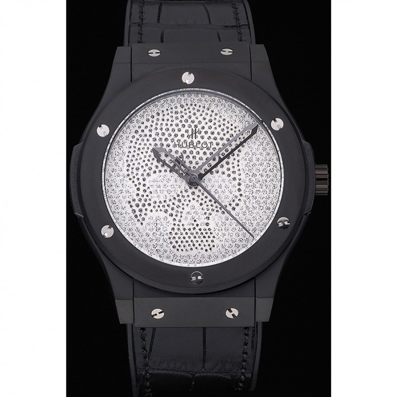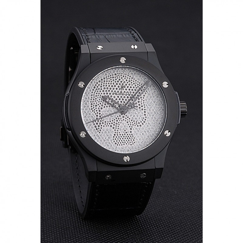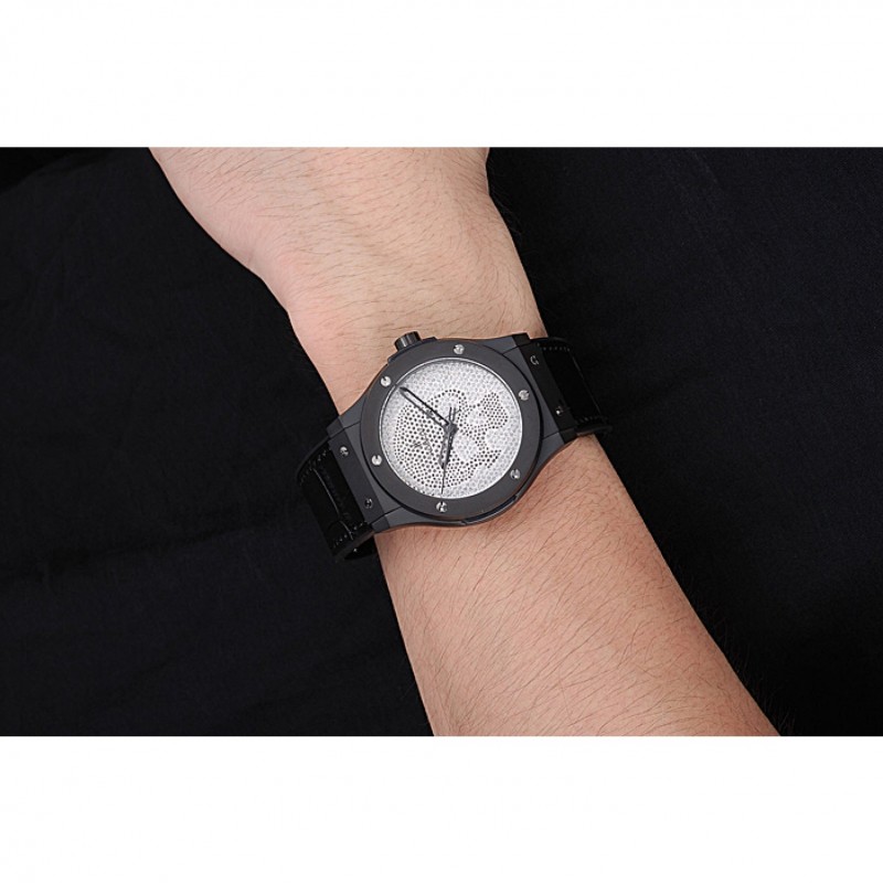 Hublot Classic Fusion cráneo del diamante Caja de acero Dial Negro correa de cuero Negro 622815