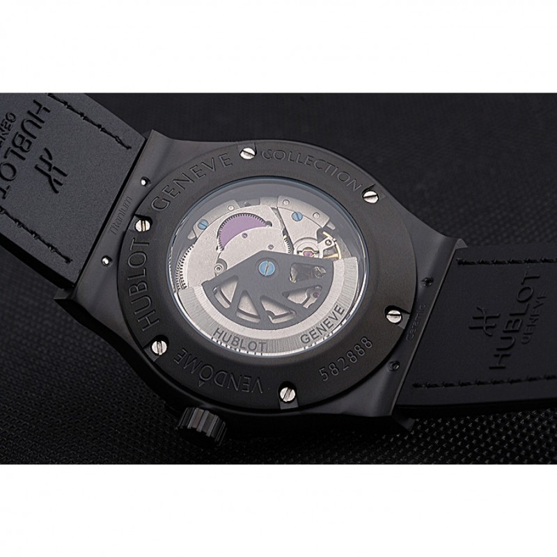 Volver: Ion-plateado atornillada de nuevo con la mecánica transparentes revelando centro y grabados Hublot Geneve