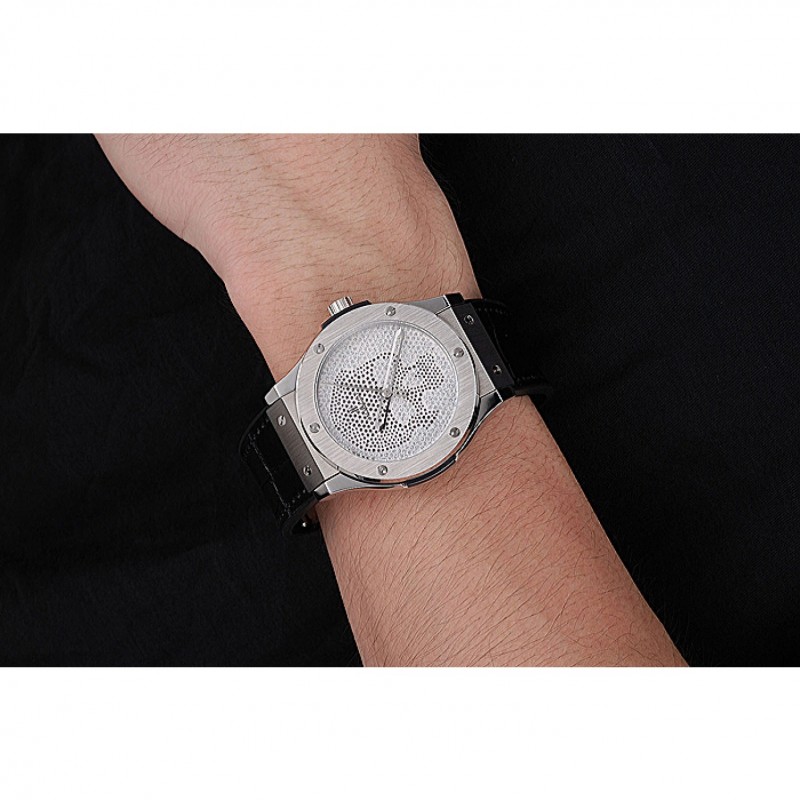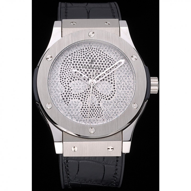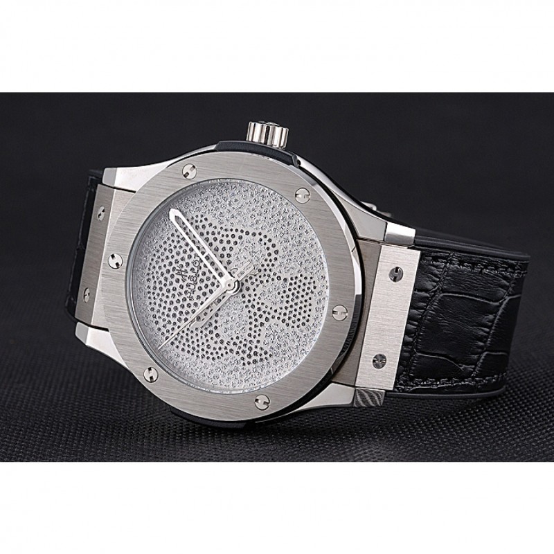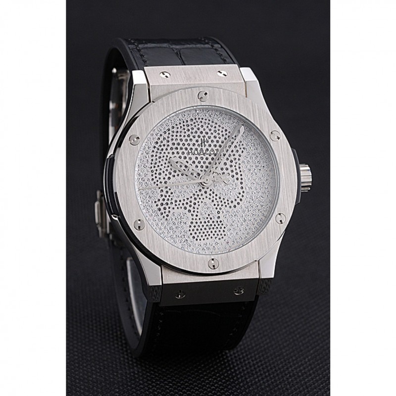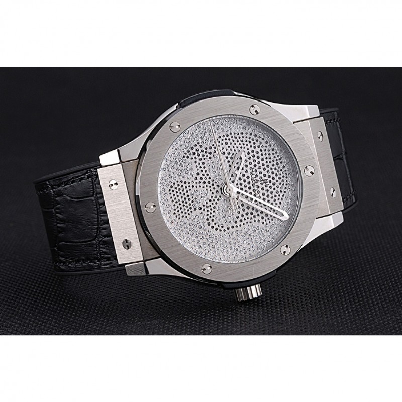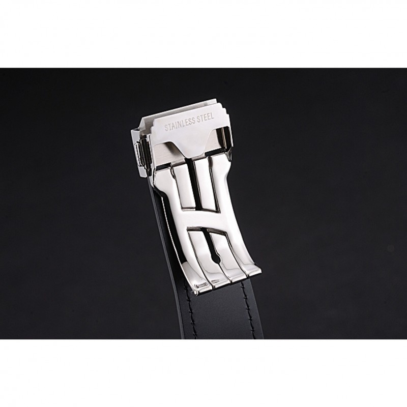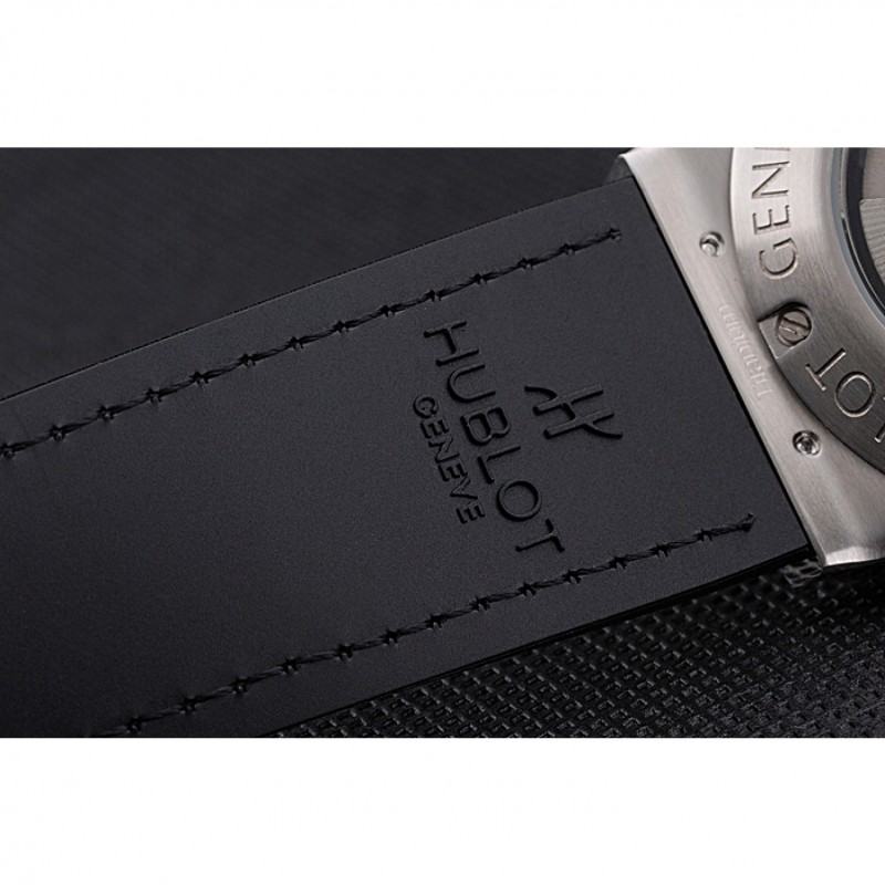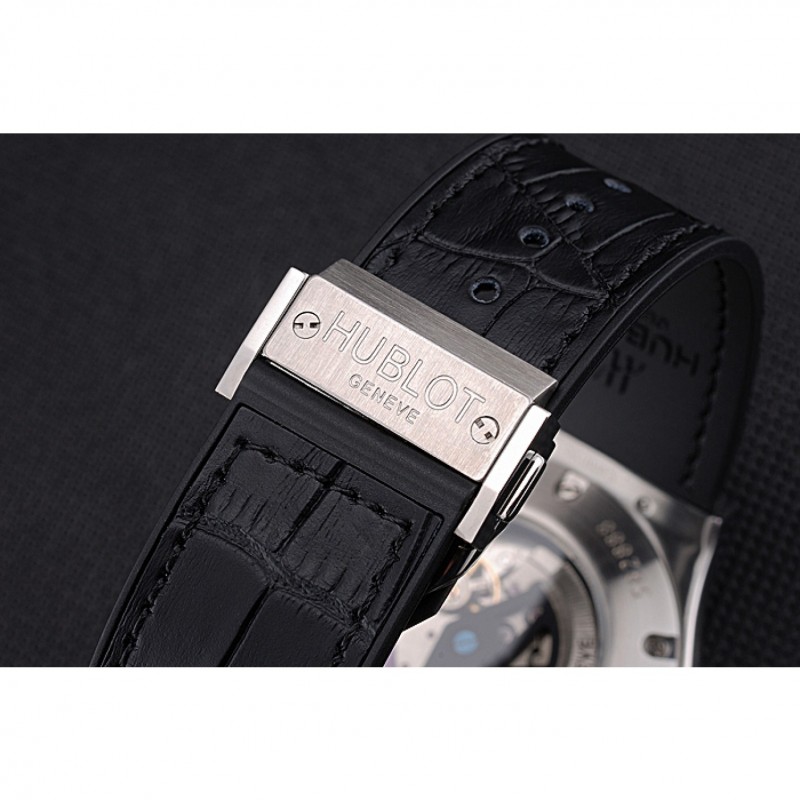 pulsera: logo y Hublot Geneve correa de piel de cocodrilo negro en relieve de calor con Hublot Geneve grabado cepillado broche de gancho de acero inoxidable