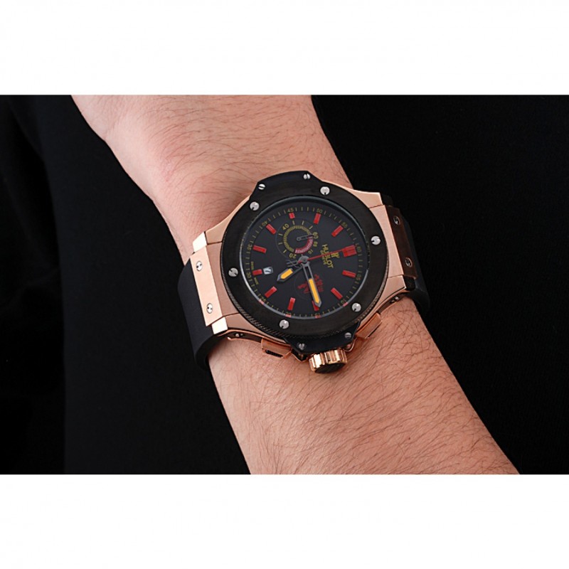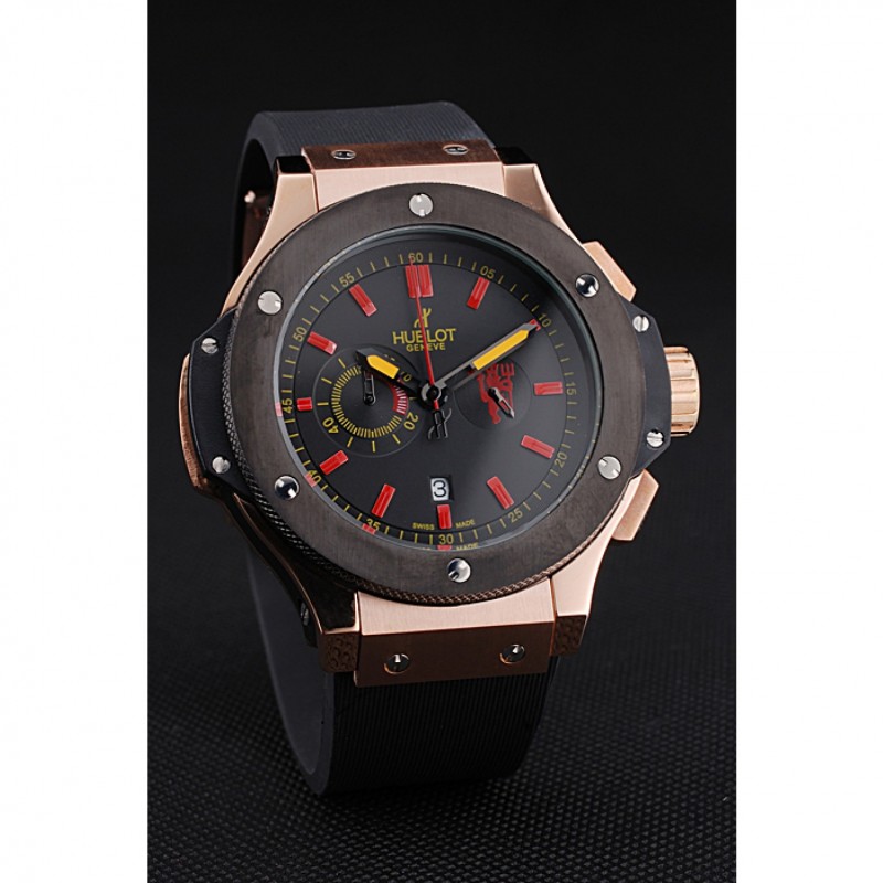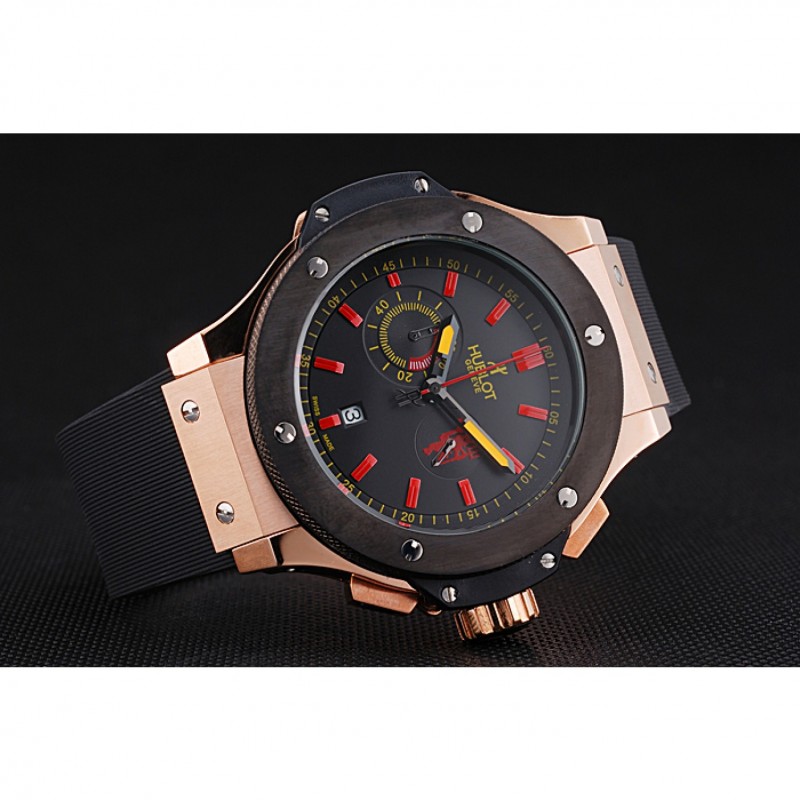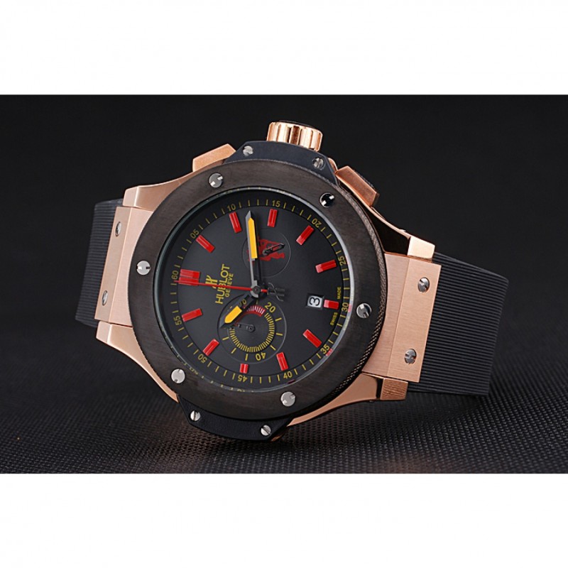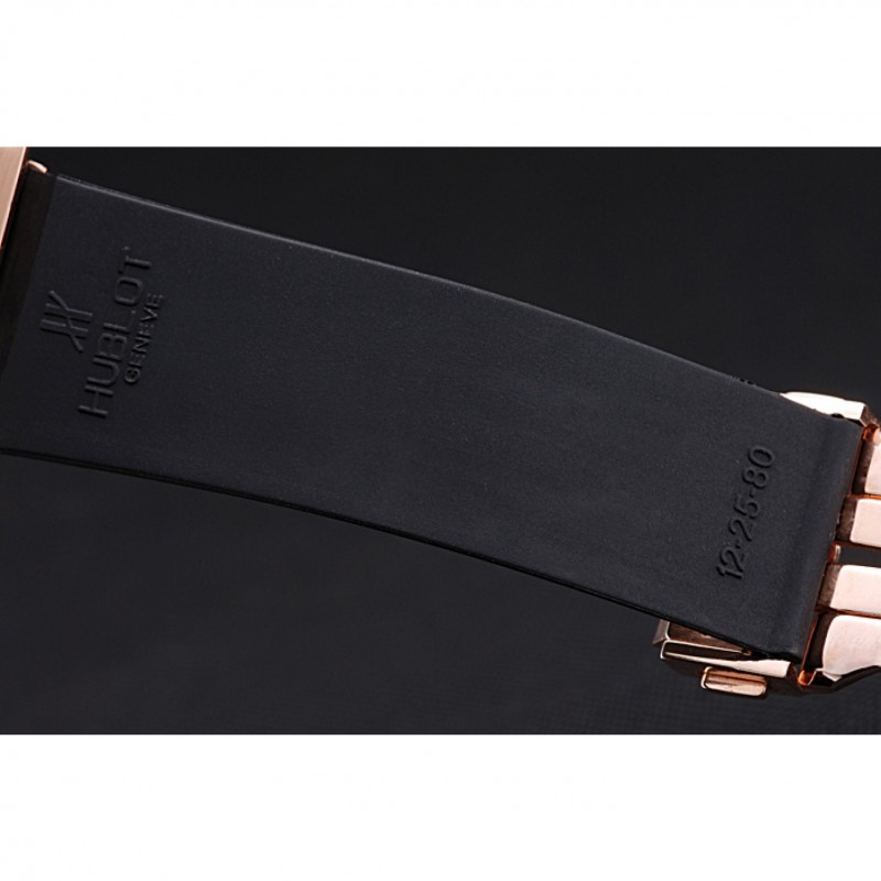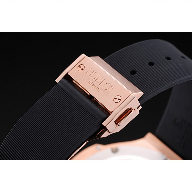 pulsera: Heat logotipo en relieve y Hublot Geneve acanalado correa de caucho negro con Hublot Geneve grabado doblar-sobre rosa-chapado en oro empujar de liberación gancho corchete