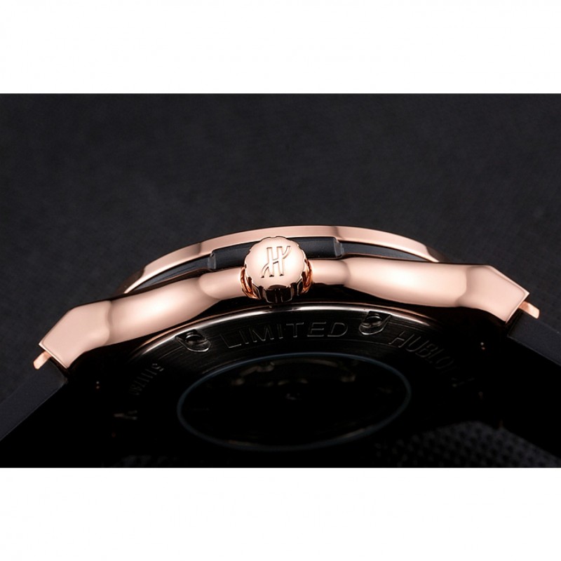 Crown: logo Hublot grabado de caucho negro espárrago de 18K rose-chapado en oro cutwork corona