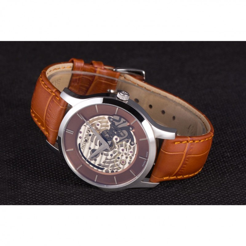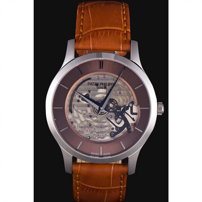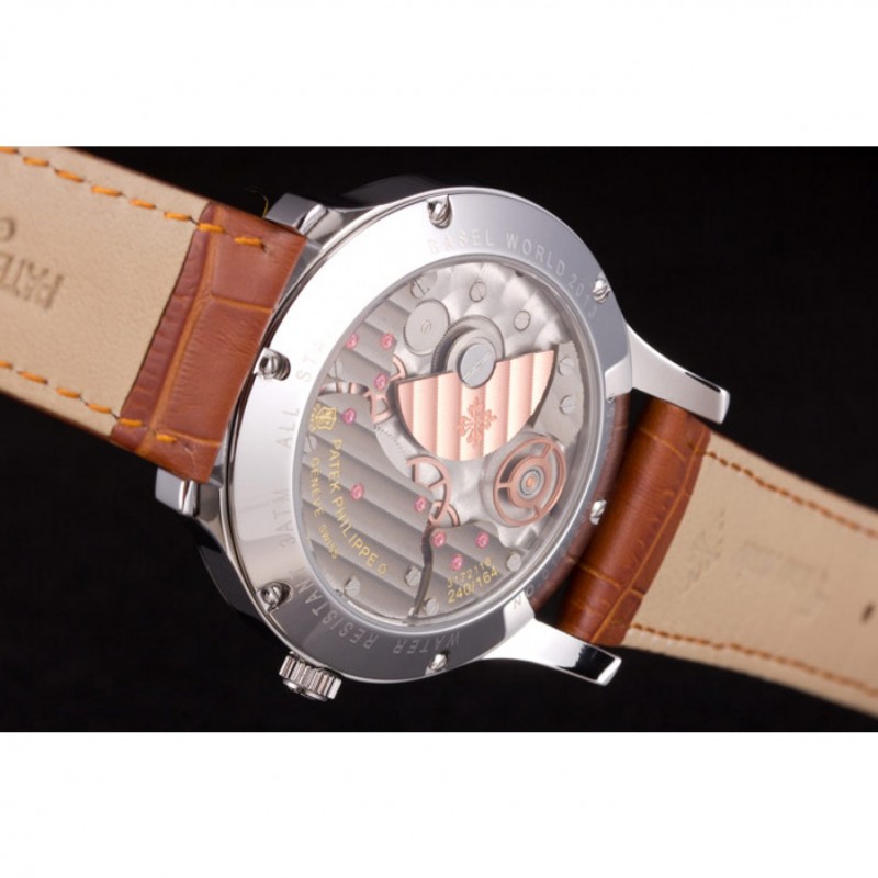 pulsera: calor Patek Philip Geneve en relieve marrón correa de piel de cocodrilo con Patek Philip grabado de acero inoxidable cepillado gancho hebilla de cierre