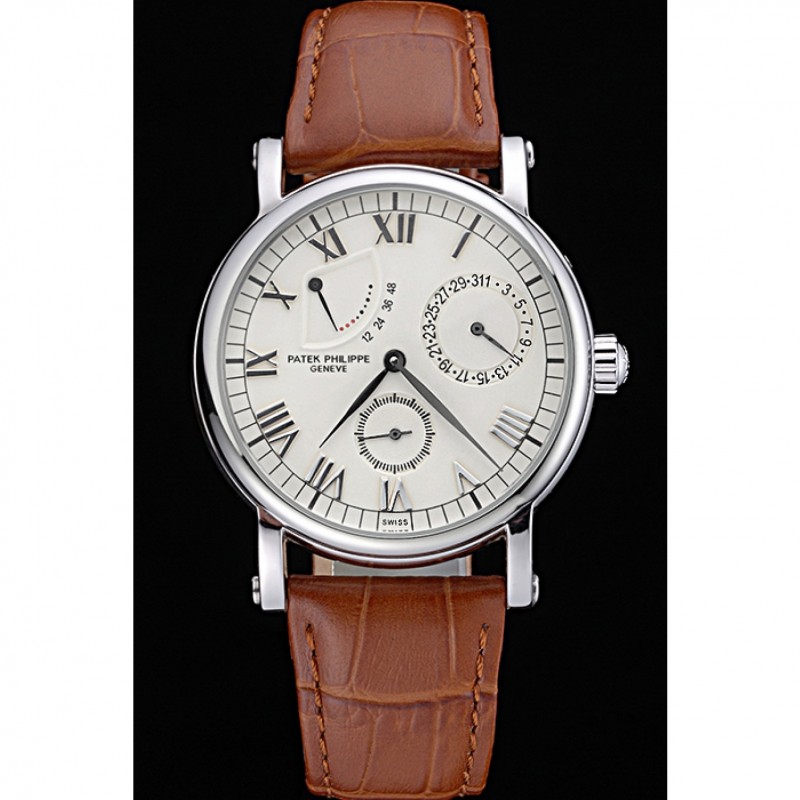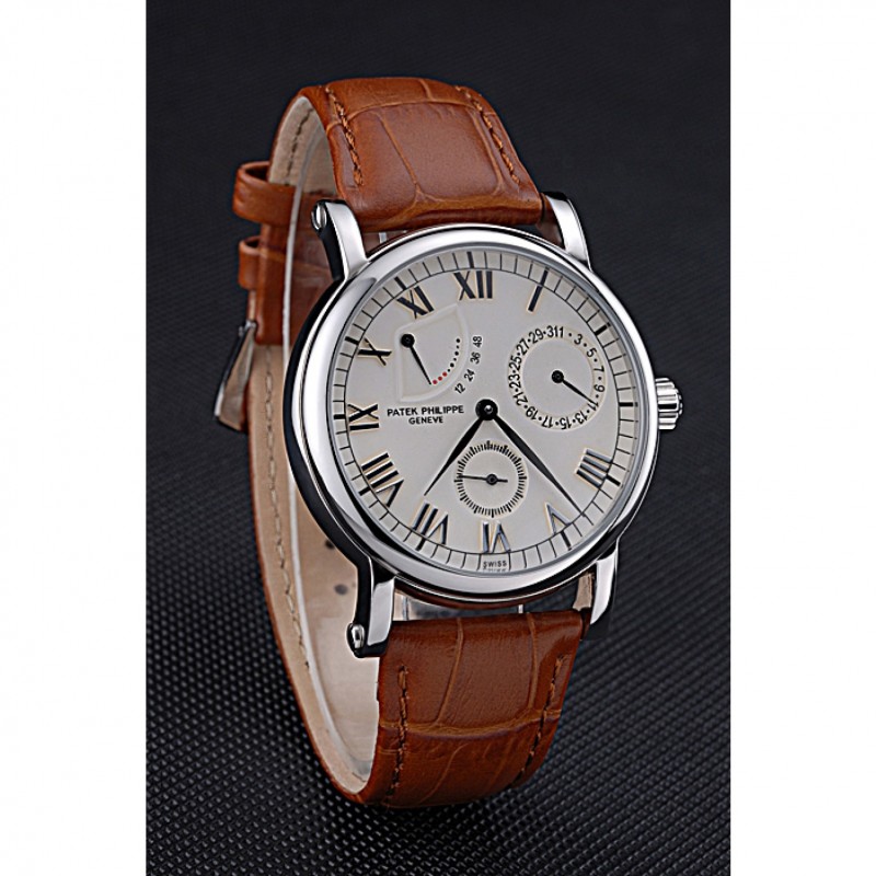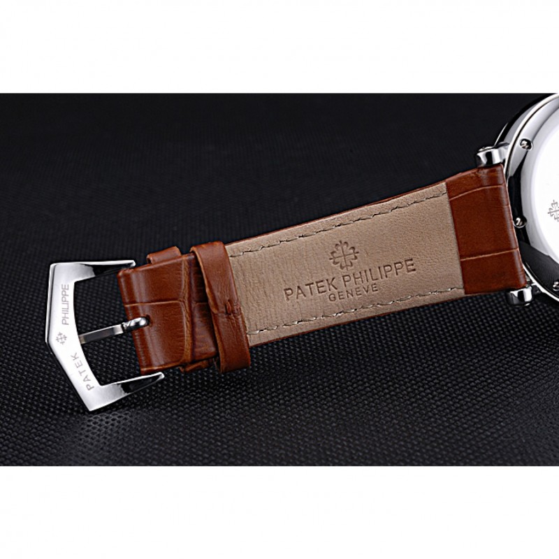 pulsera:piel de cocodrilo marrónlogo y el calor Patek Philippe Geneve en relieve correa con Patek Philippe inscrito pulida de acero inoxidable gancho hebilla de cierre
