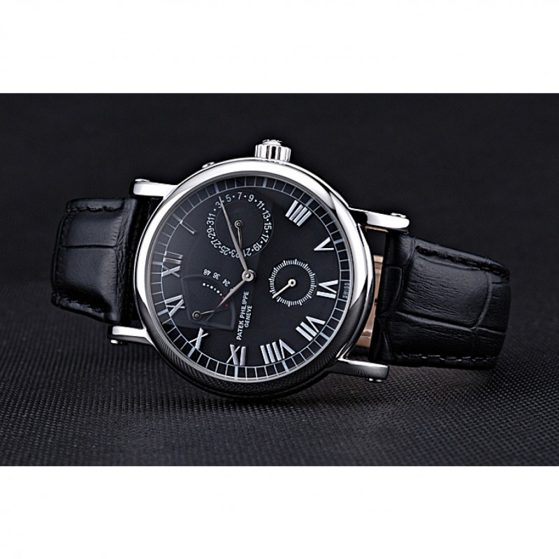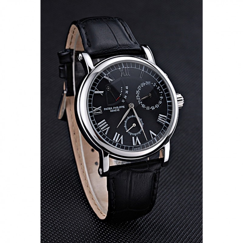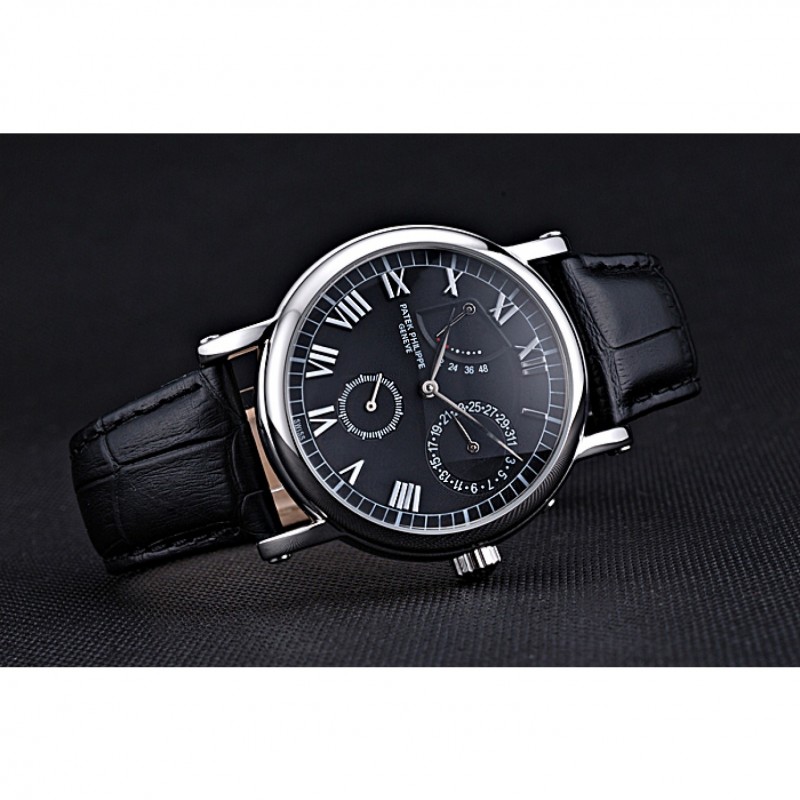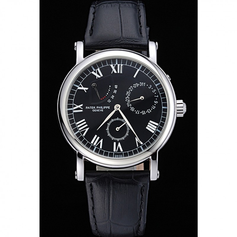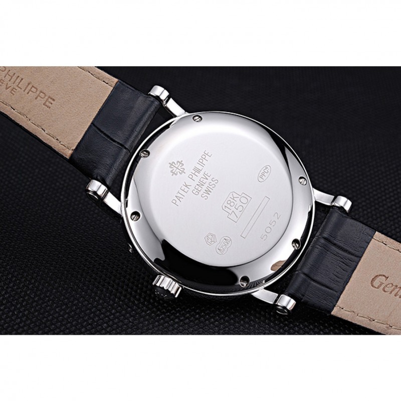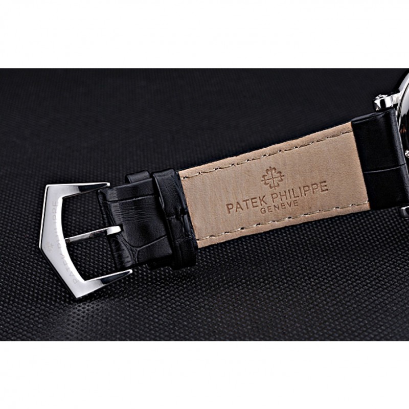 pulsera:piel de cocodrilo negrologo y el calor Patek Philippe Geneve en relieve correa con Patek Philippe inscrito pulida de acero inoxidable gancho hebilla de cierre