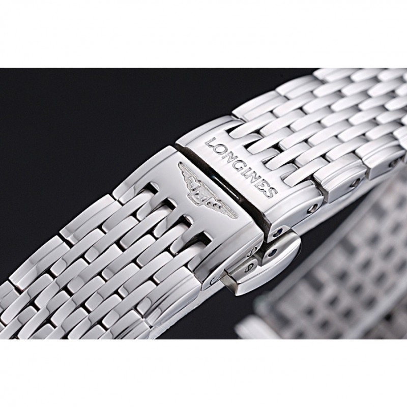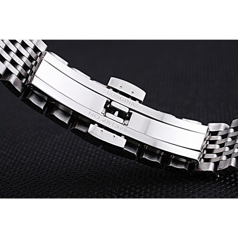 pulsera: pulido brazalete de eslabones de acero inoxidable con Longines y cierre oculto logotipo grabado empuje de liberación