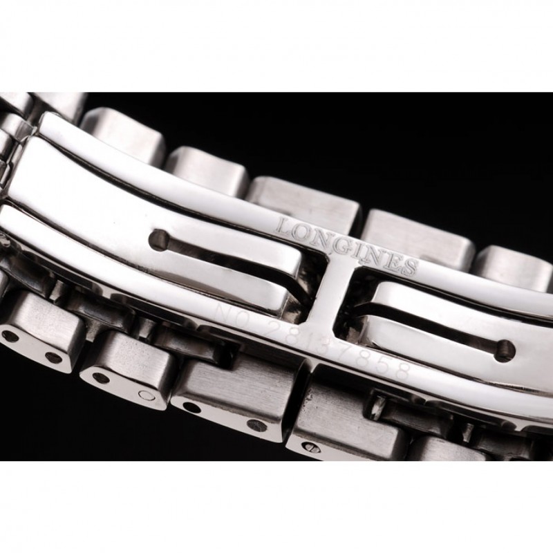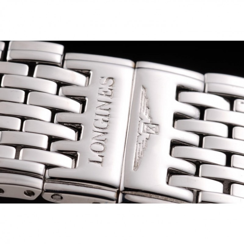 pulsera: pulido brazalete de eslabones de acero inoxidable con Longines y el logotipo grabado cierre oculto