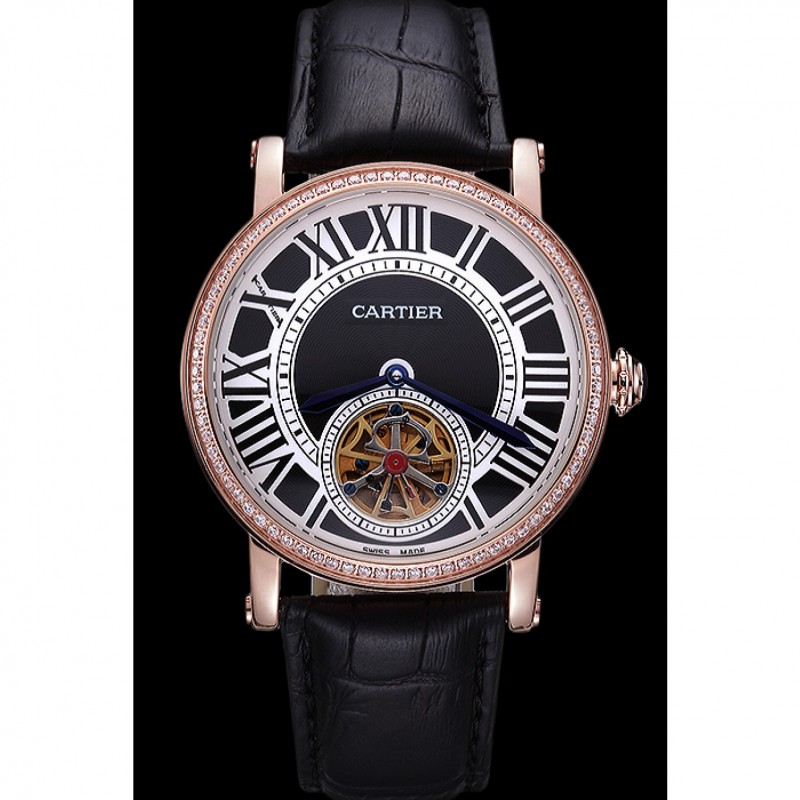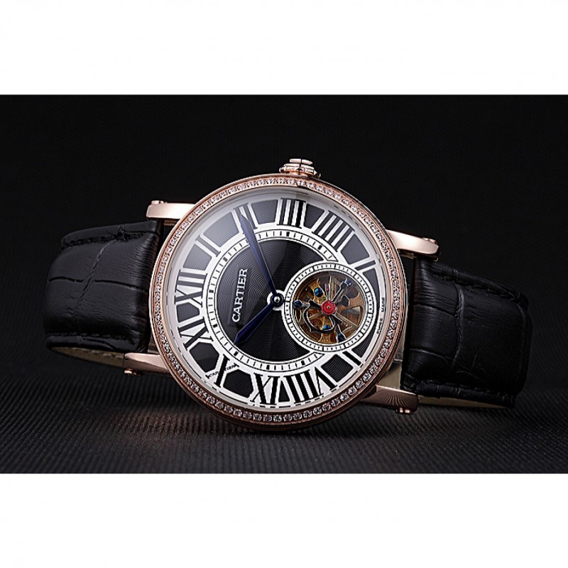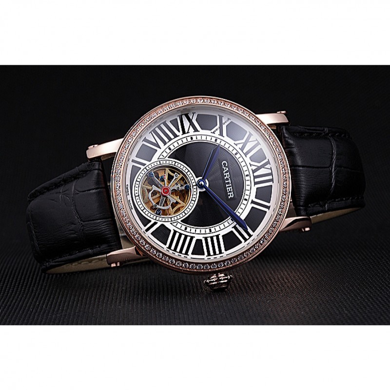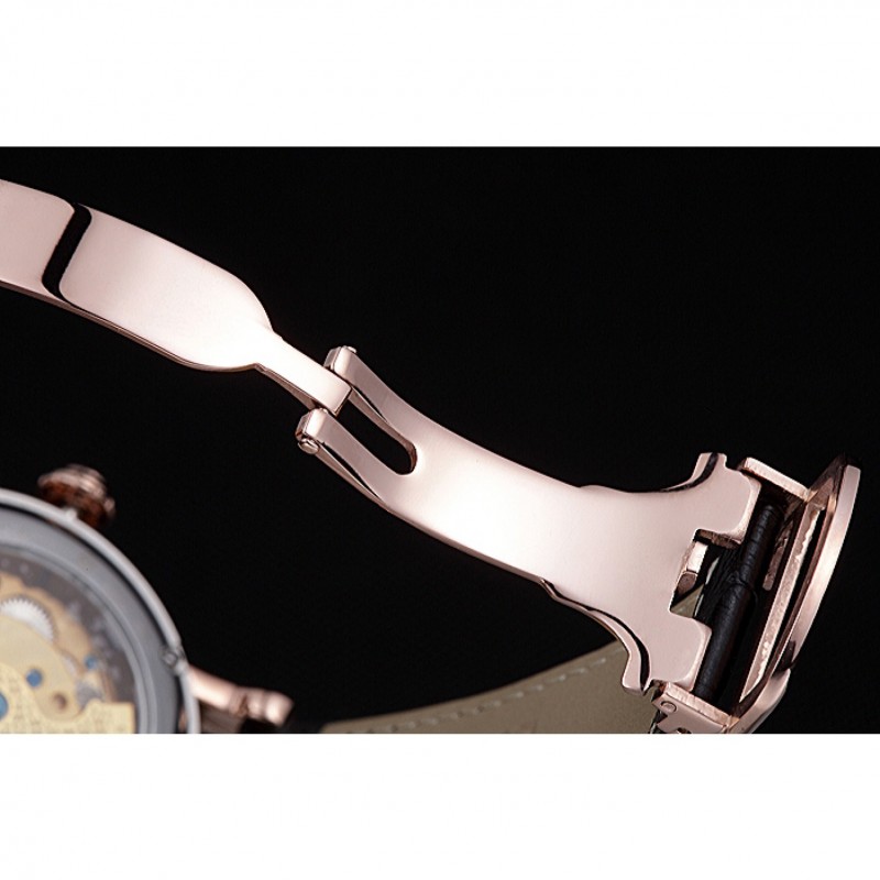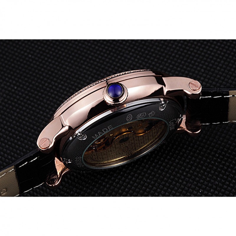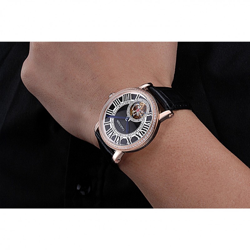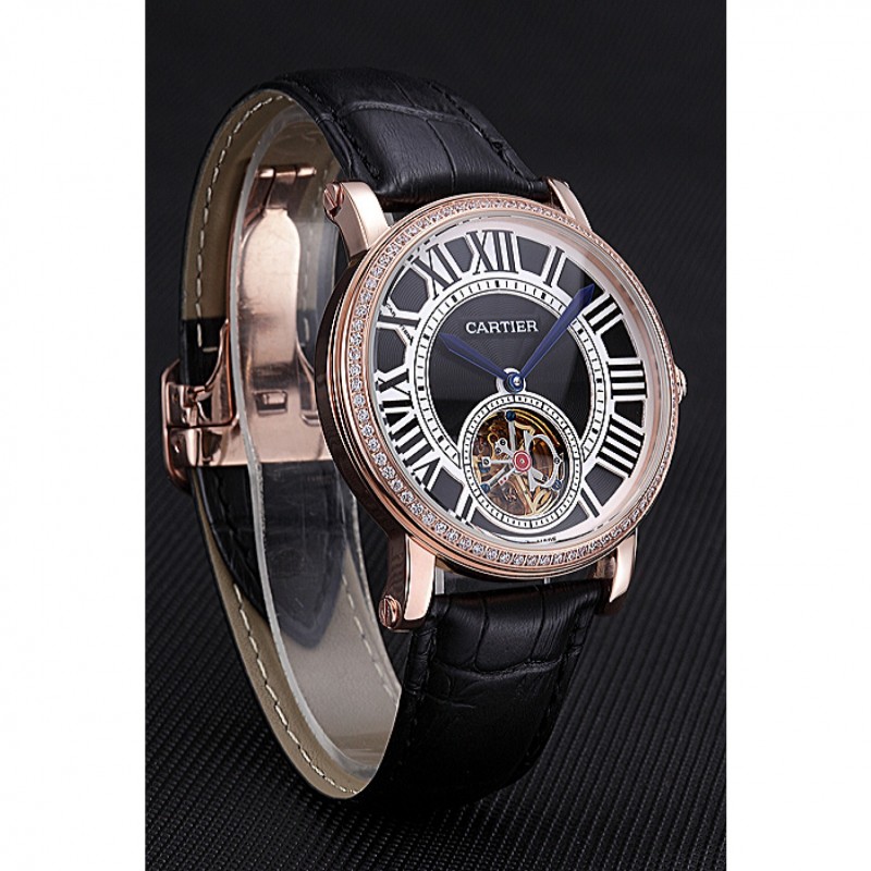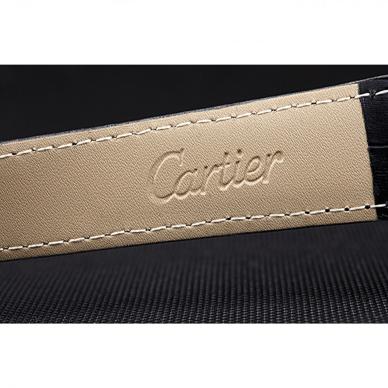 pulsera: calor Cartier correa de piel de cocodrilo negro en relieve con 18K rose-chapado en oro plegable en corchete