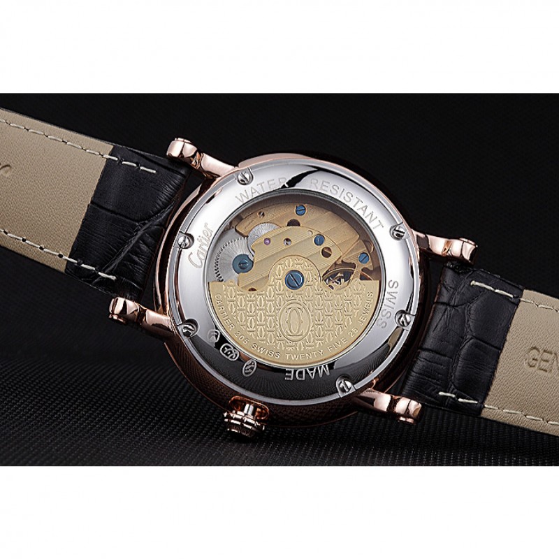 Volver: acero inoxidable pulido atornillada de nuevo con la mecánica transparentes revelando centro y la inscripción Cartier